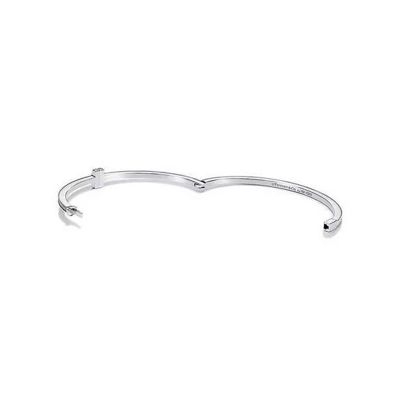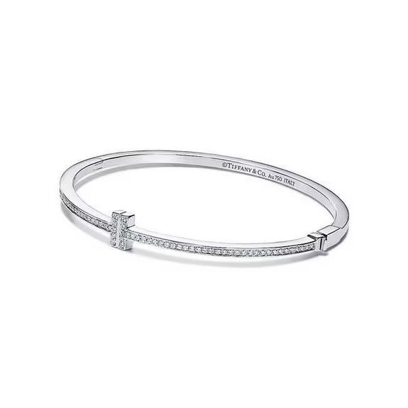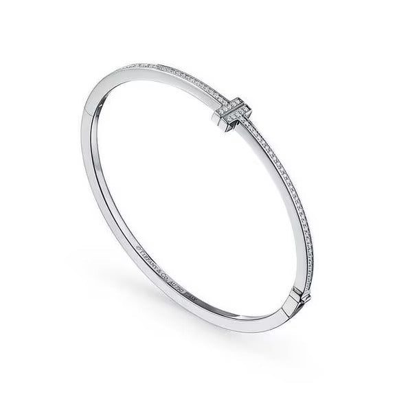 This sleek bangle design is complemented by a striking center motif and diamonds. As multifaceted as it is iconic, the Tiffany T collection is a tangible reminder of the connections we feel but can't always see. Stack this hinged bangle with other Tiffany T bracelets for a bold look, or simply wear it on its own.