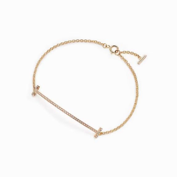 Graphic angles and clean lines blend to create the beautiful clarity of the Tiffany T collection. Diamonds elegantly trace this bracelet's striking curved design.
