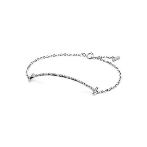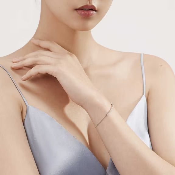 Graphic angles and clean lines blend to create the beautiful clarity of the Tiffany T collection. Diamonds elegantly trace this bracelet's striking curved design.