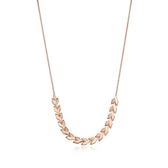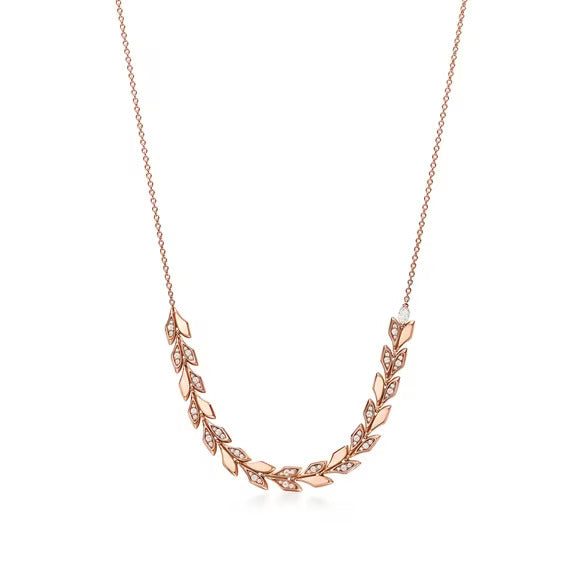 Inspired by the natural world, Tiffany Victoria designs capture the fluid movement of flowers, vines and leaves with a mix of expertly cut diamonds. This striking pendant is crafted of 18k rose gold that features a contrast of high polish and sandblasted finishes. Round brilliant and marquise diamonds play off the light and accentuate the vine motif. When too many diamonds are never enough, Tiffany Victoria is the ultimate way to shine. Wear on its own for a dramatic statement or layer with pendants of different lengths.