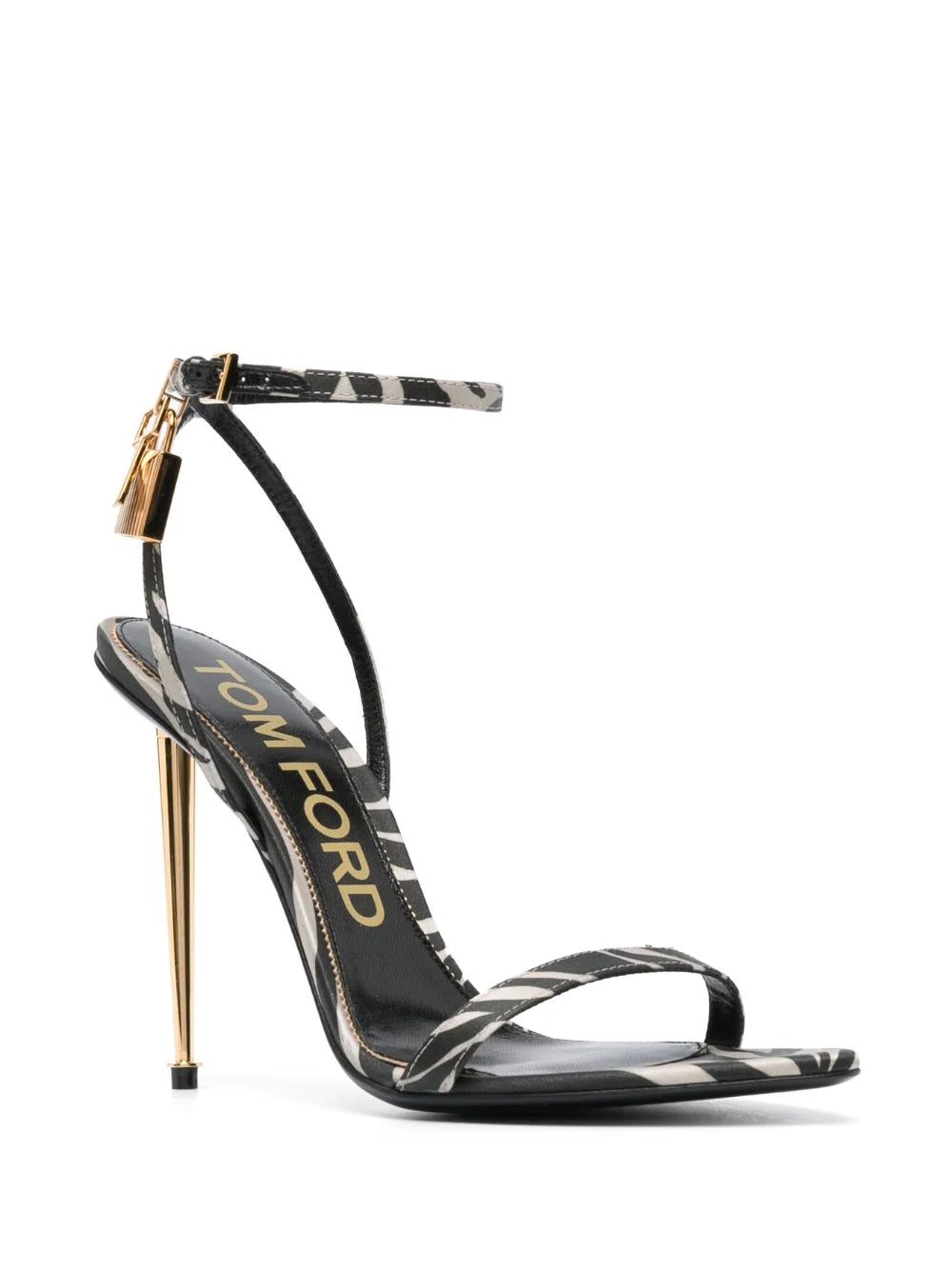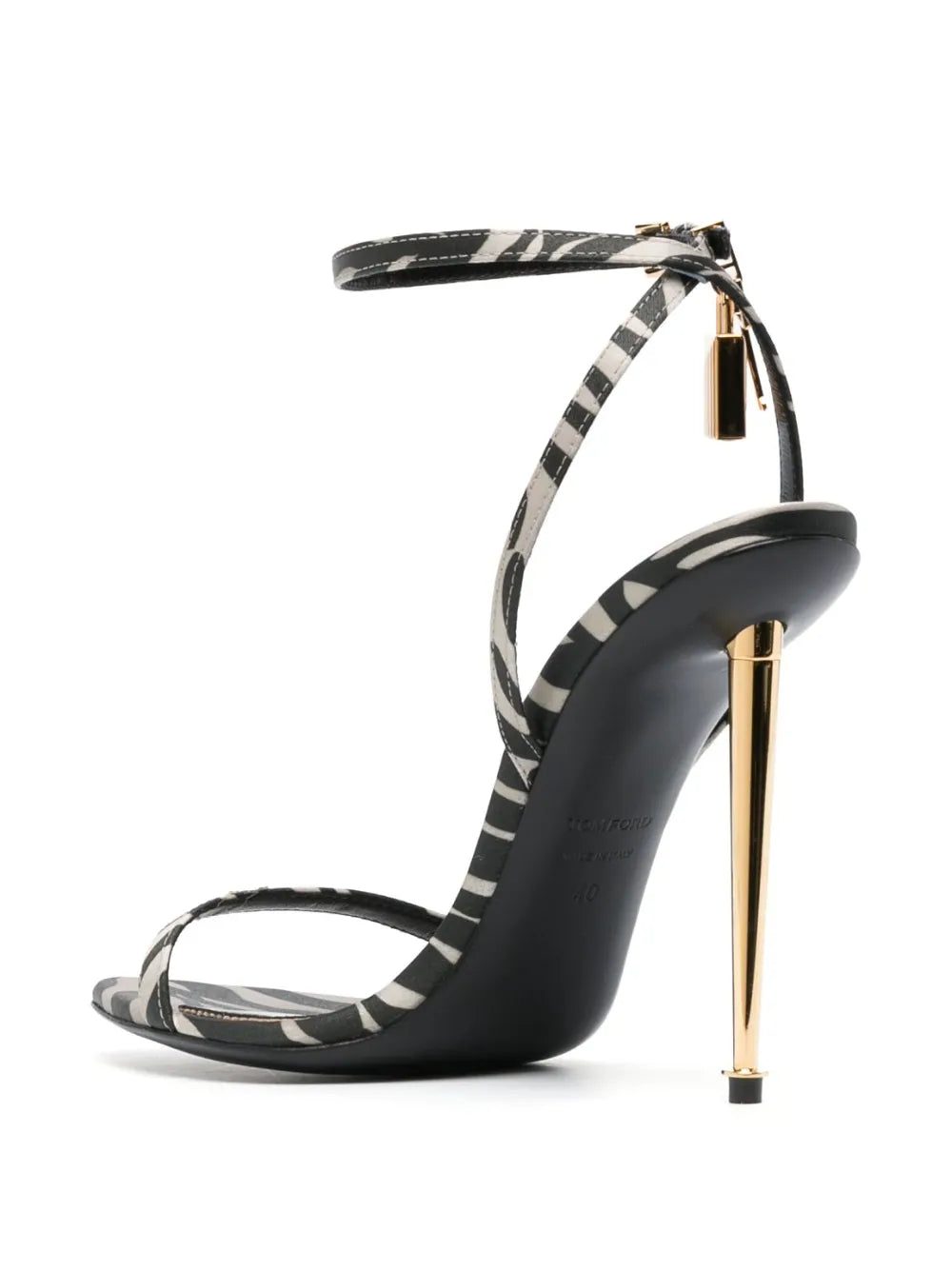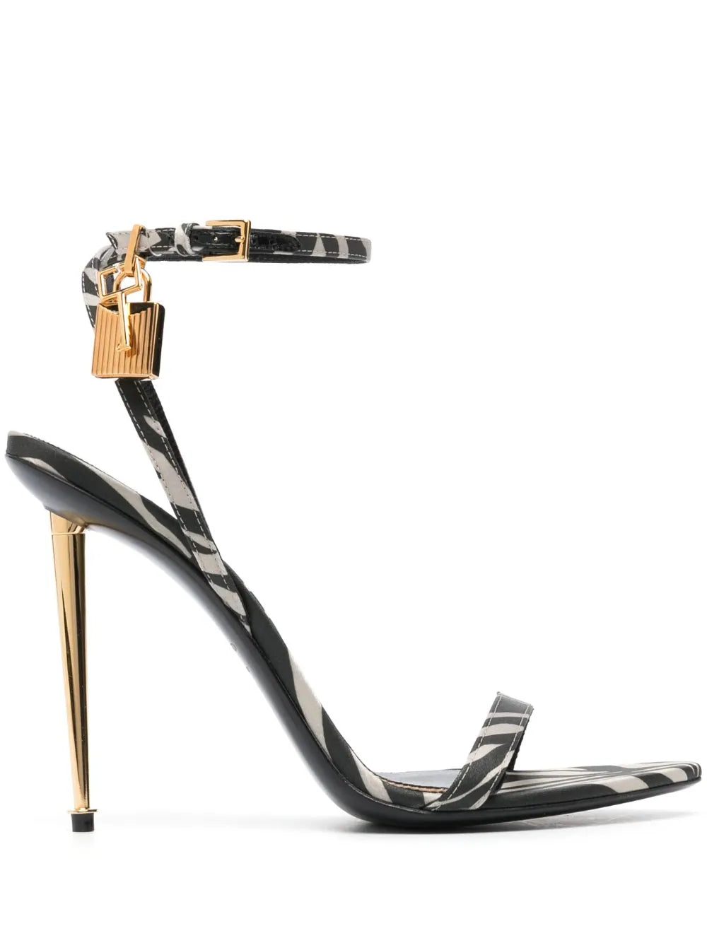 TOM FORD's confident design approach is on full show with these sandals. They're propped on a towering gold-tone stiletto heel and boast monochrome zebra stripes on the straps. The brand's iconic Padlock makes an appearance at the ankle for a signature finish.