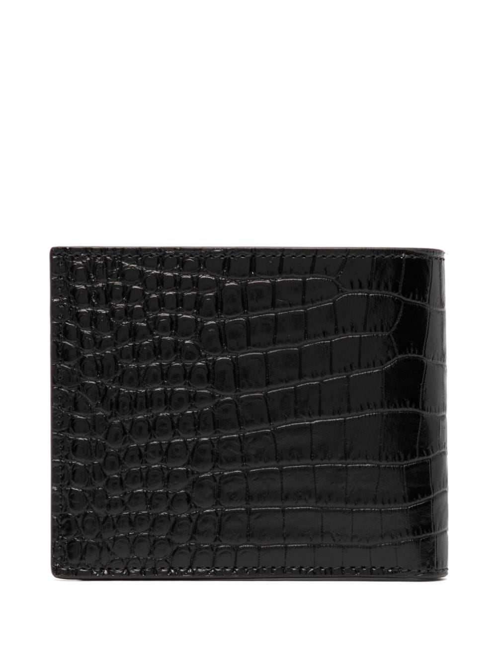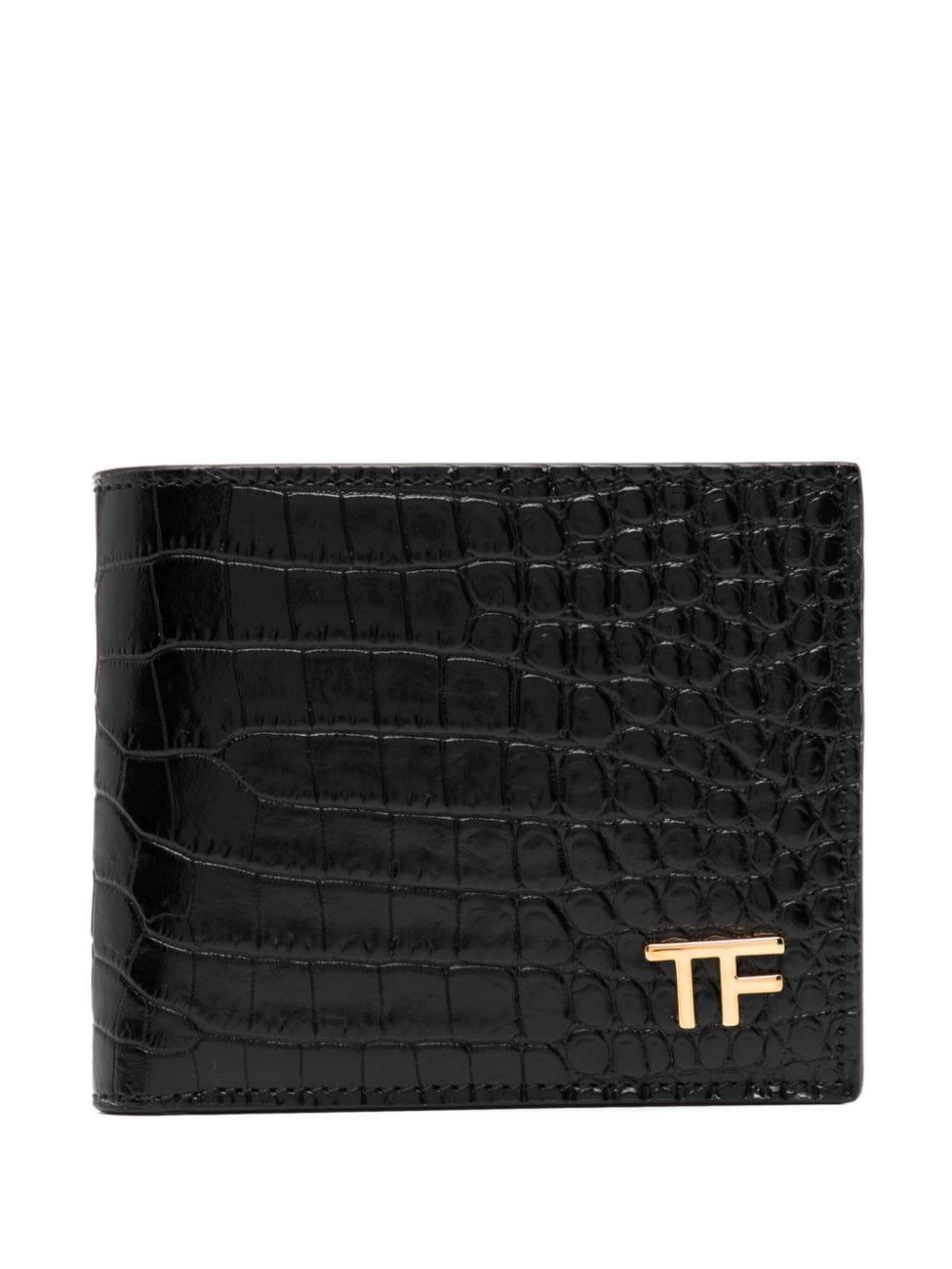 This Tom Ford wallet is crafted in Italy from embossed crocodile-effect leather. Its practical bi-fold design is elevated with a gold-tone logo plaque on the front and includes multiple internal card slots.