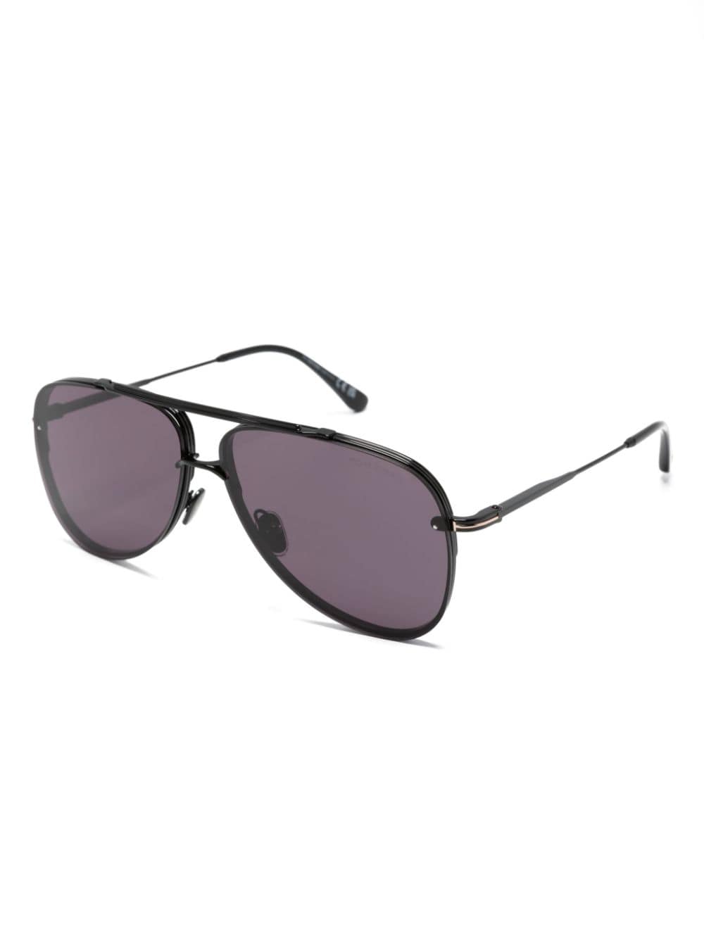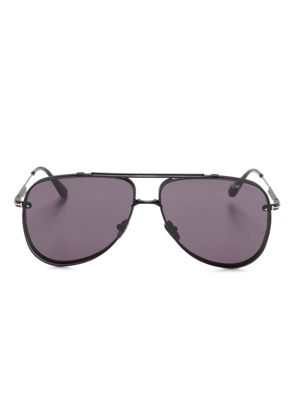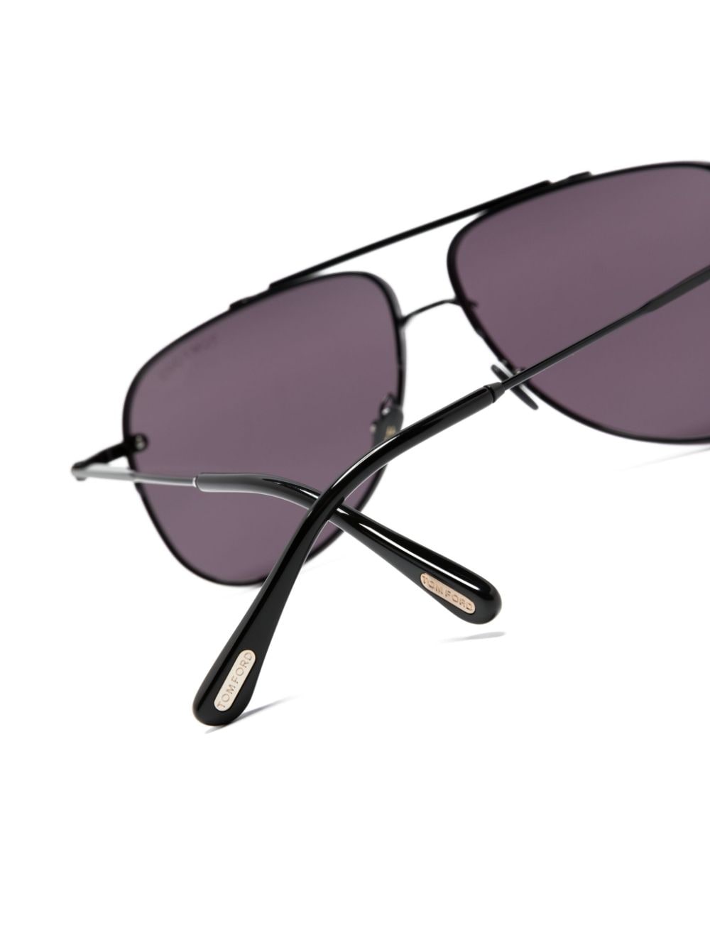 TOM FORD Eyewear’s Leon sunglasses are defined by their retro-inspired pilot frame. They’re crafted from black metal and equipped with UV-protective purple-tinted lenses.