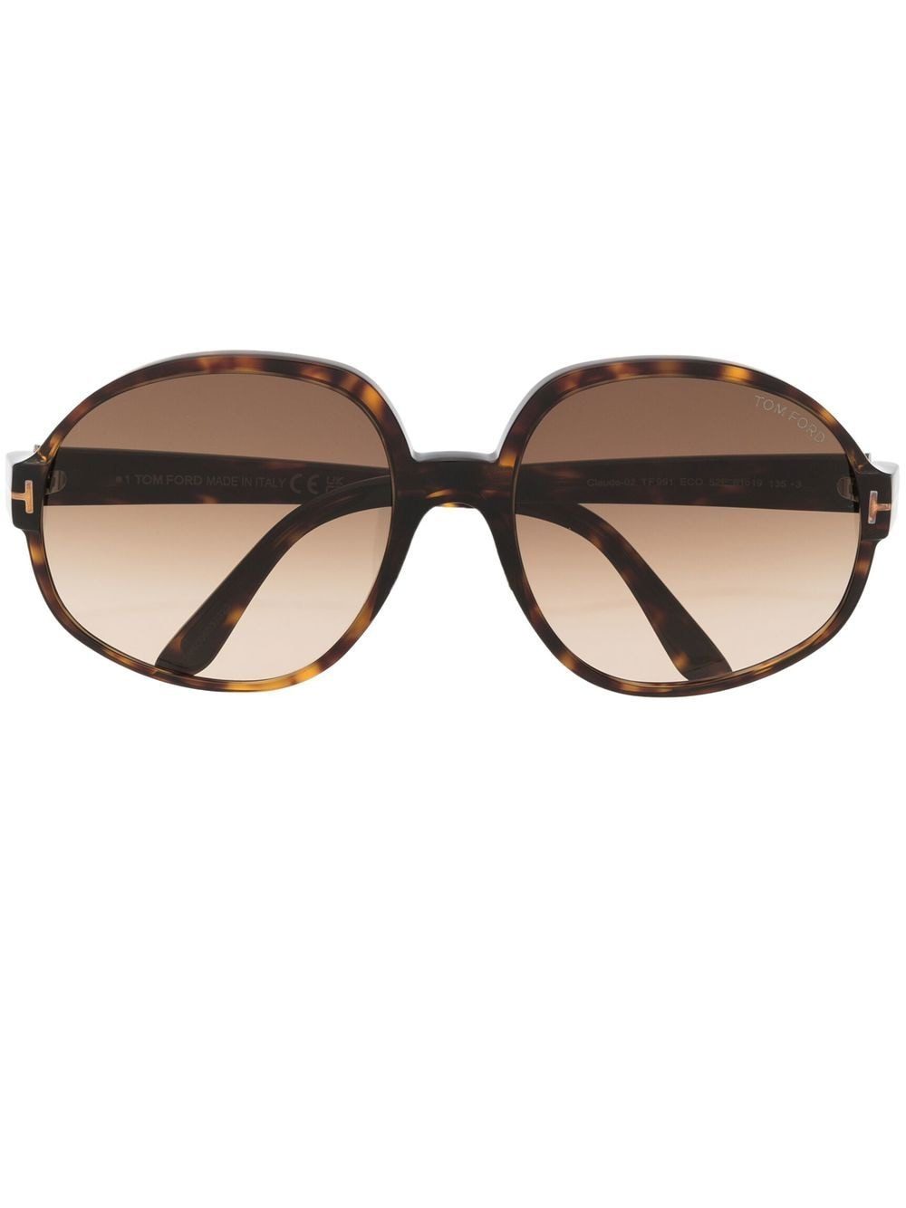 brown tortoiseshell effect oversize frame brown tinted lenses gold-tone logo plaque straight arms curved tips These glasses come with a protective case.