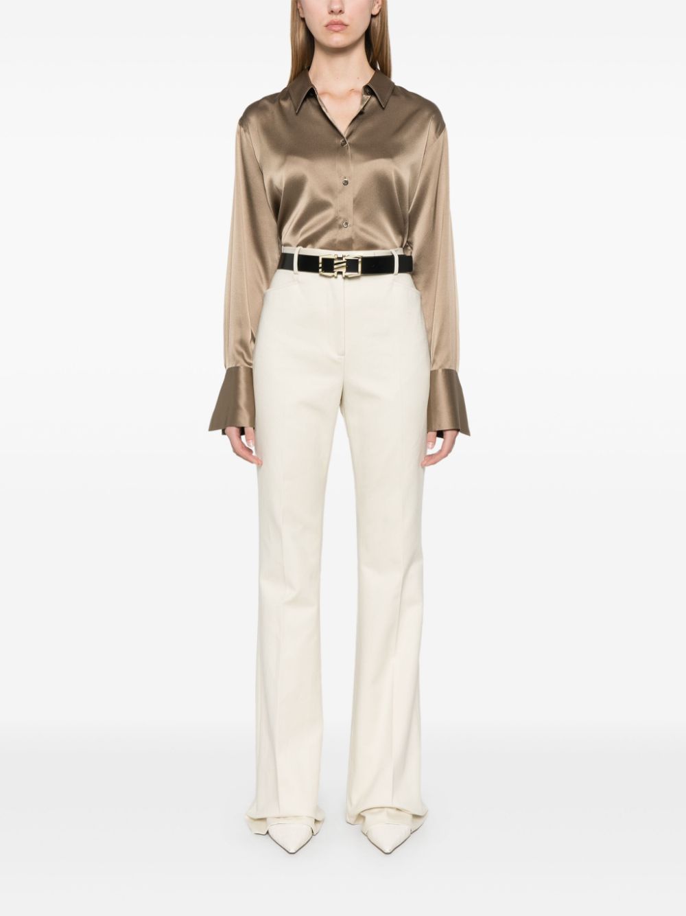 - concealed front button, hook and zip fastening