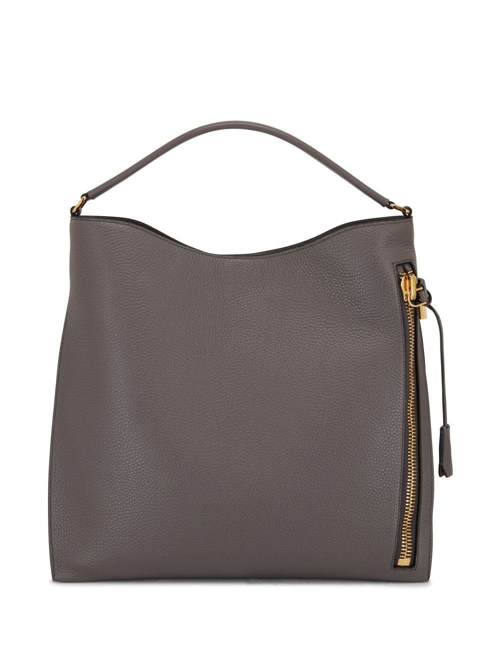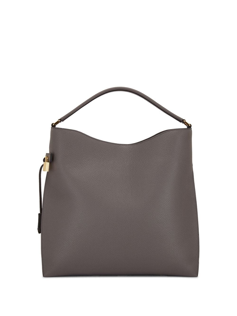dark grey grained leather pebbled texture padlock detail short side zip fastening single rolled top handle