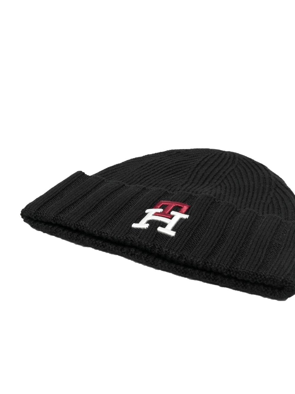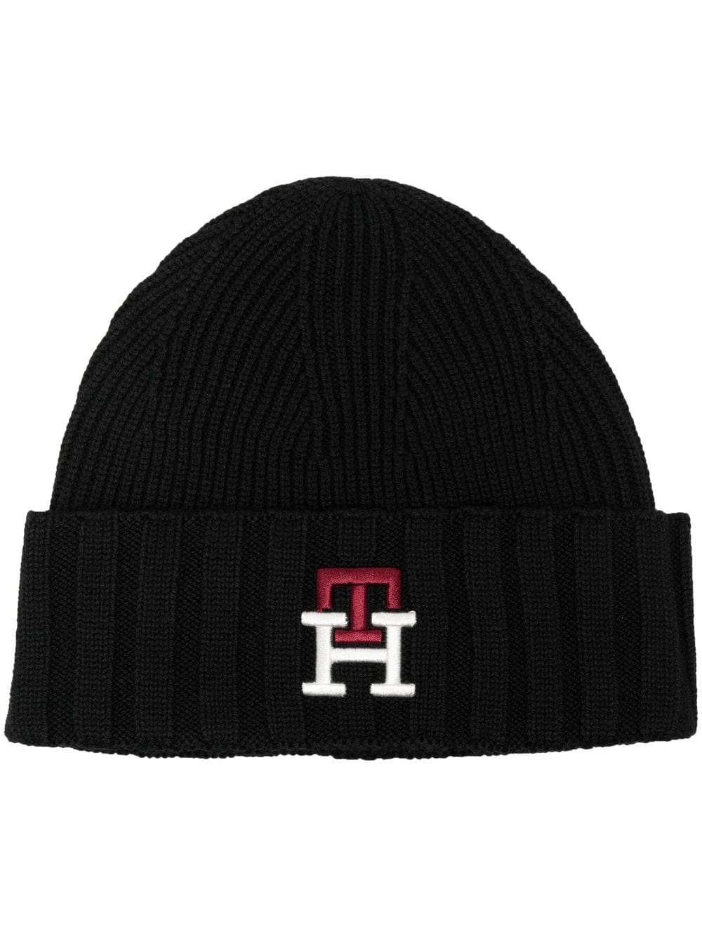 black wool blend knitted construction embroidered logo to the front turn-up brim