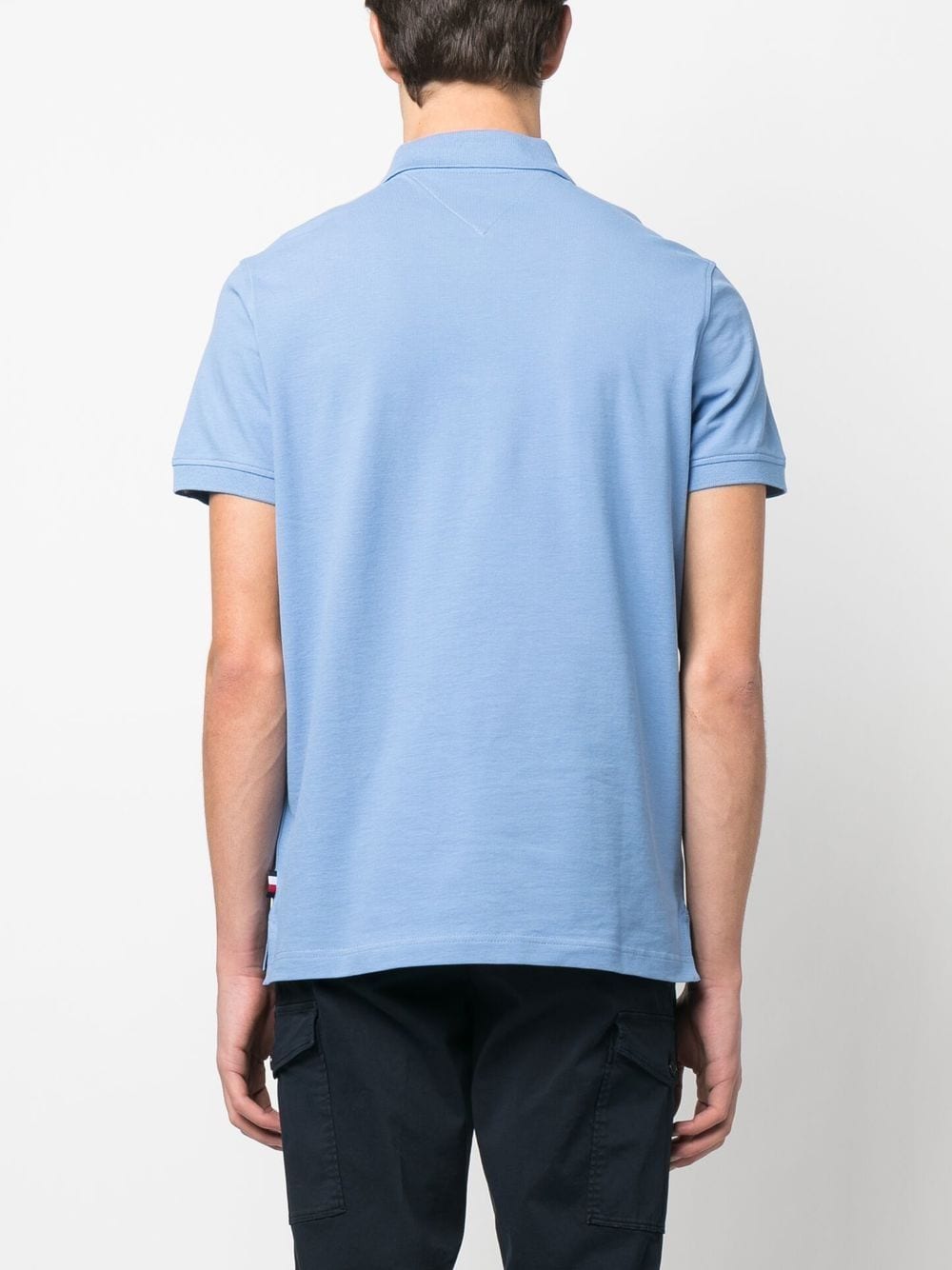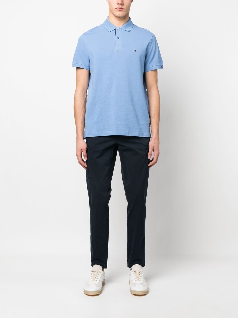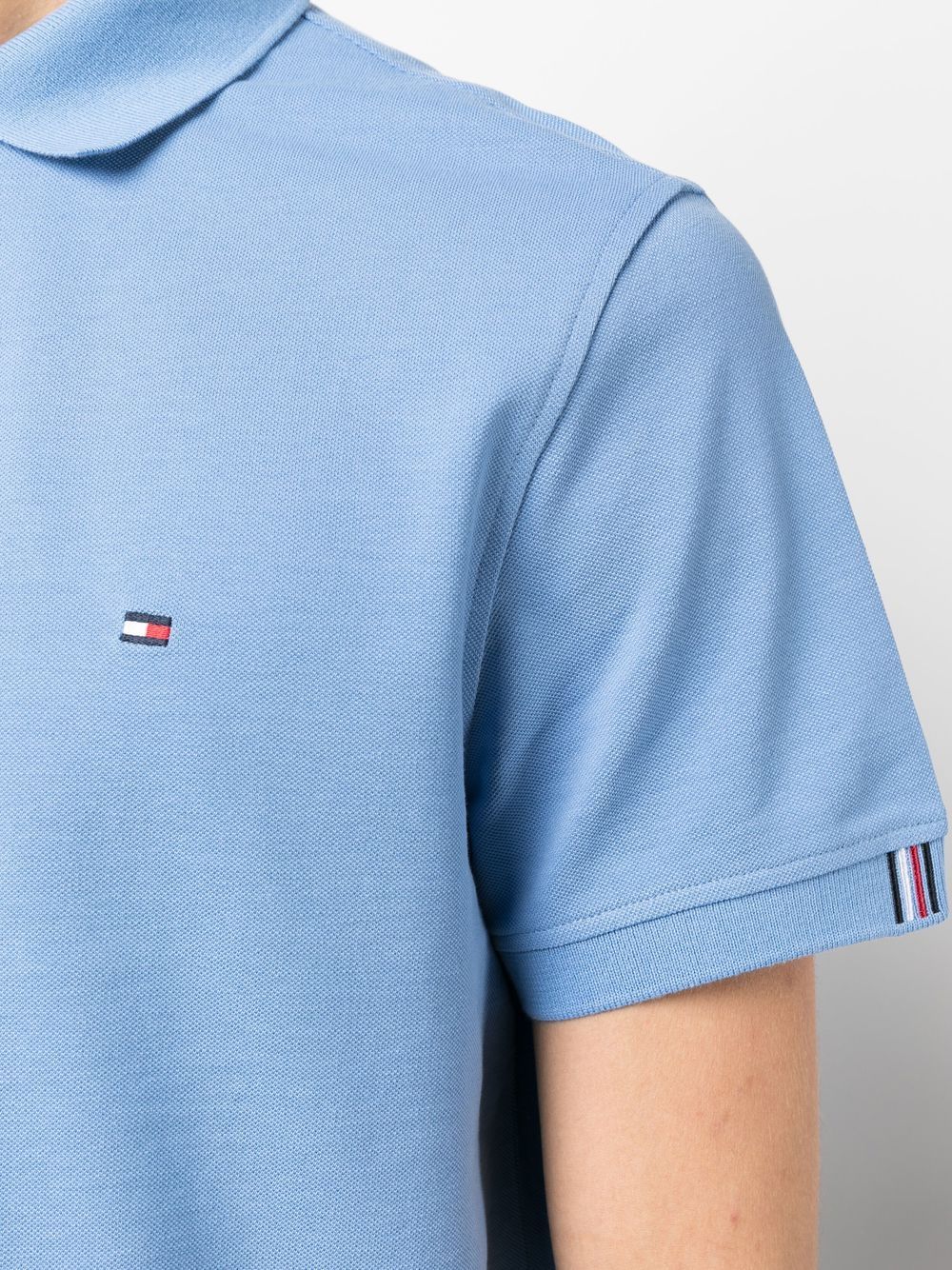 sky blue cotton embroidered logo at the chest embroidered logo at the sleeve polo collar front button placket short sleeves straight hem