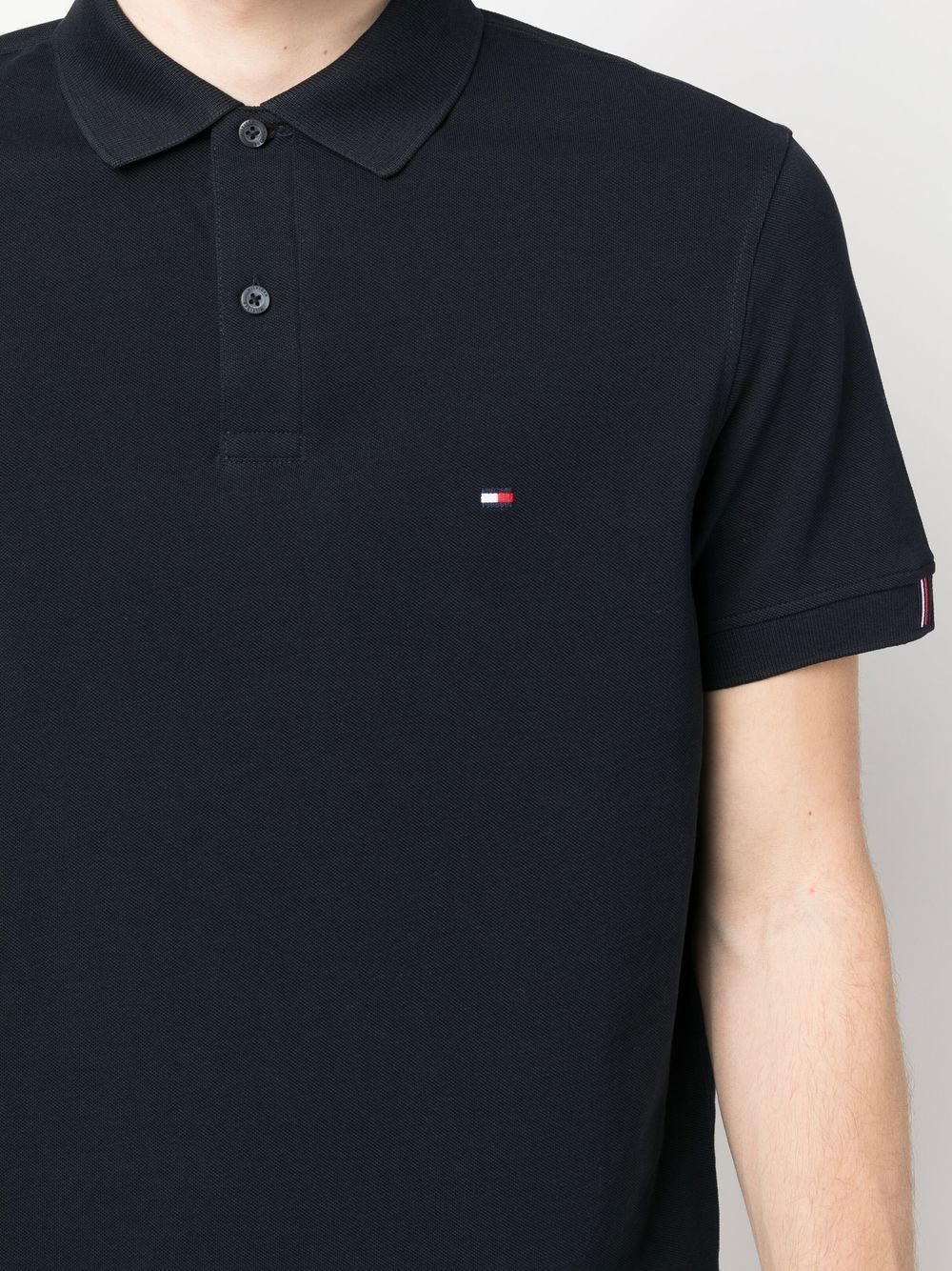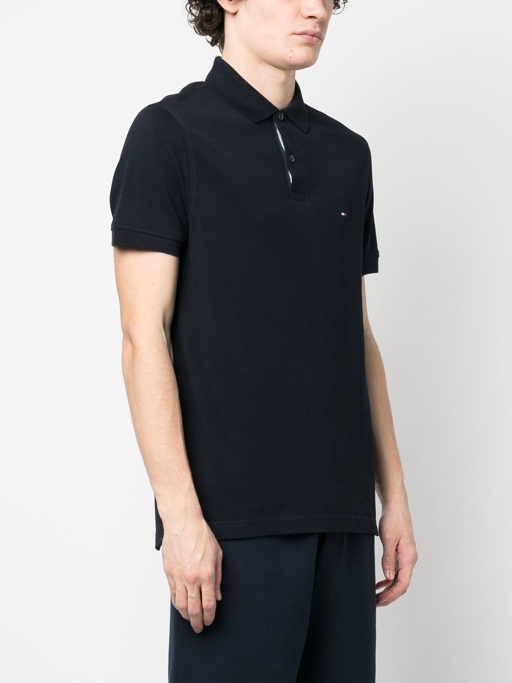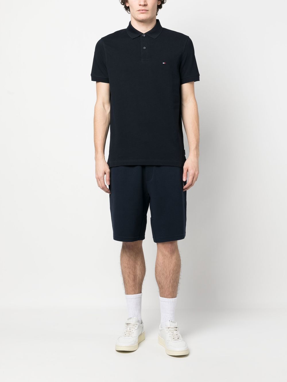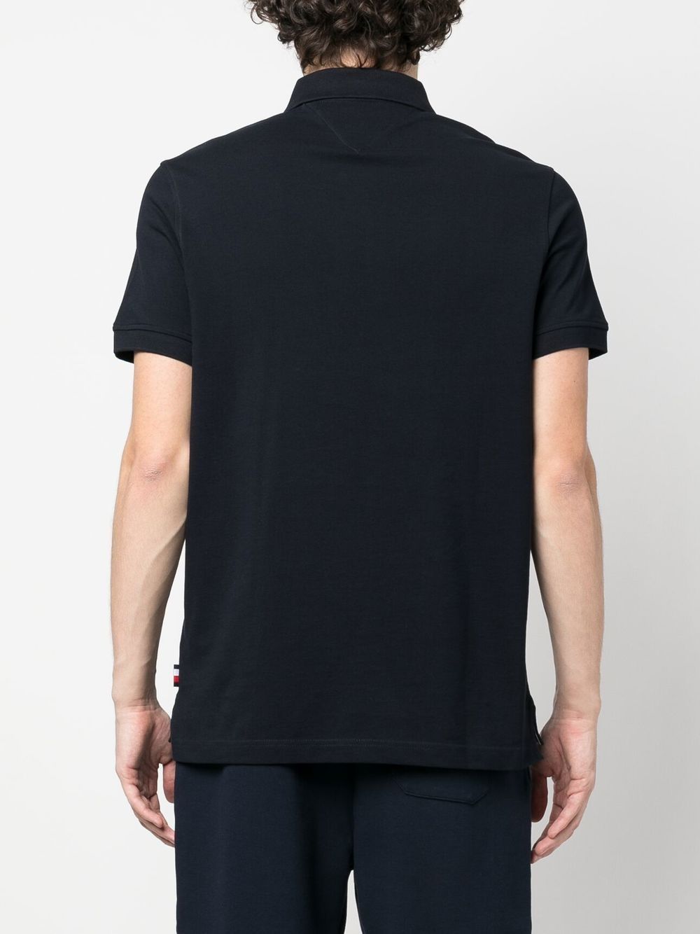 midnight blue cotton piqué weave embroidered logo at the chest short front button fastening polo collar short sleeves logo patch at the sleeve straight hem