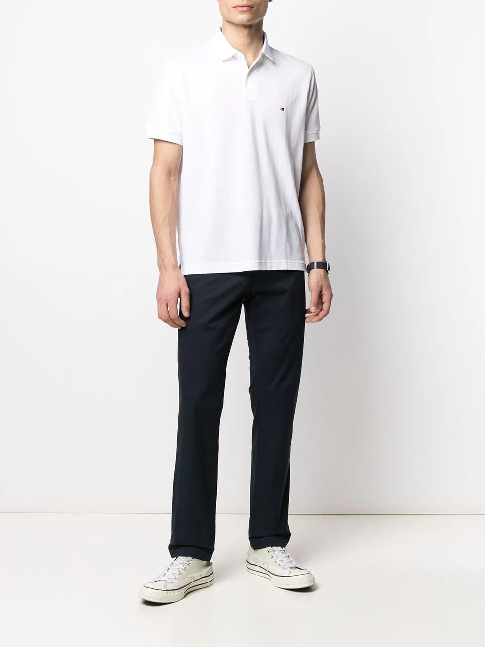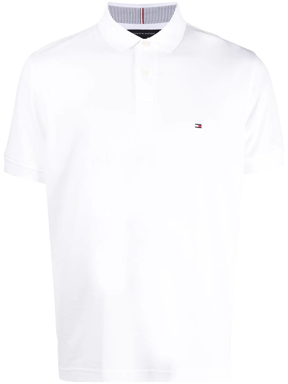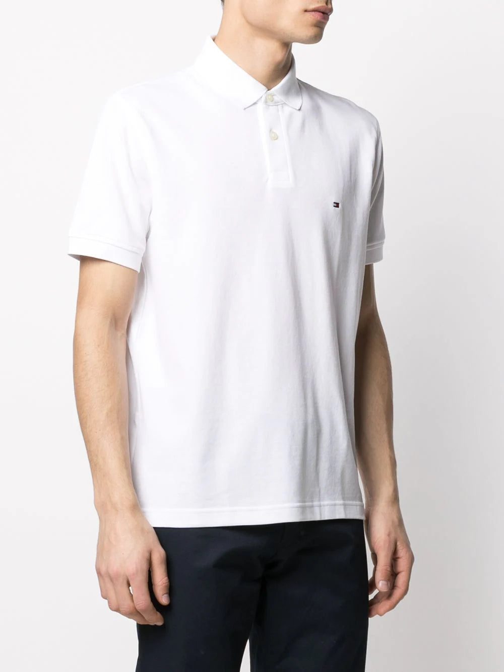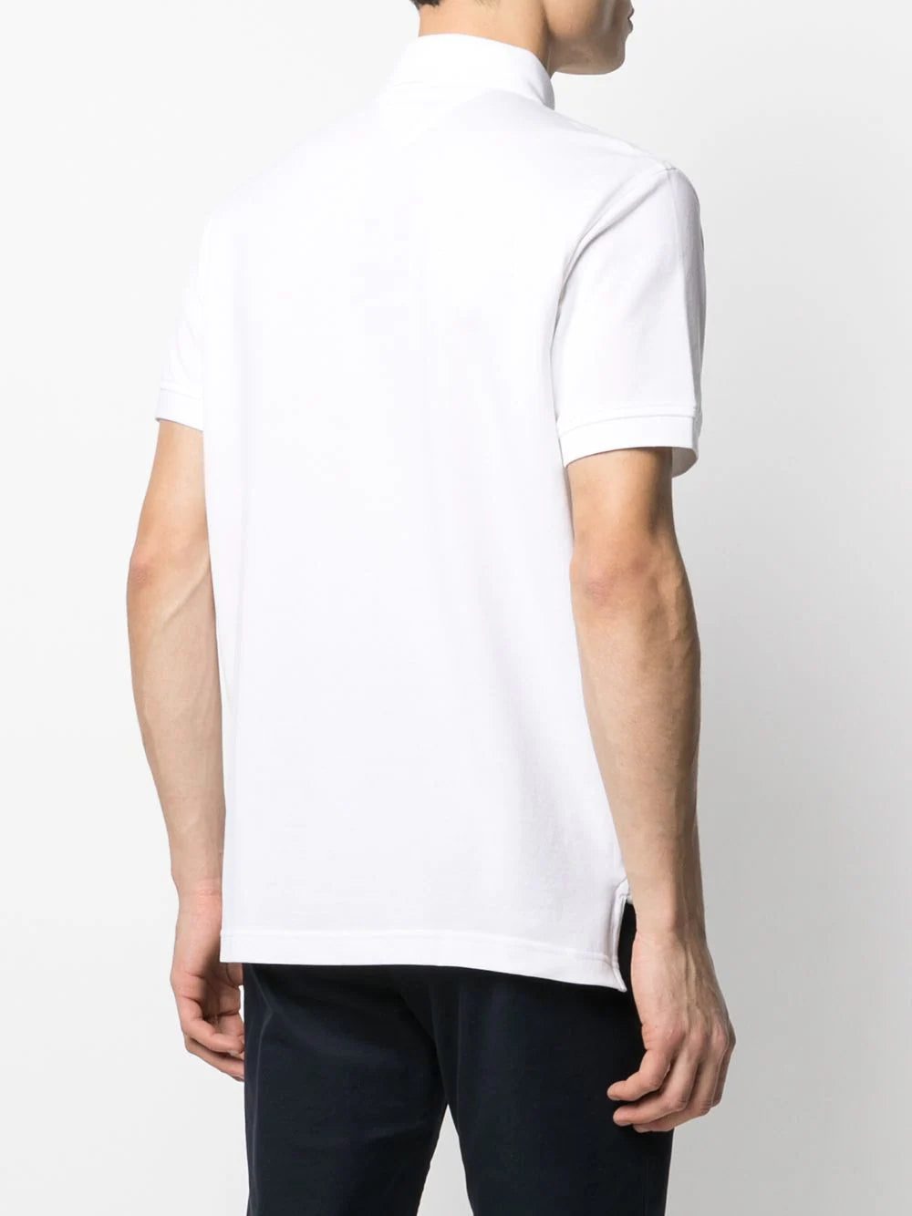 white cotton-blend polo collar logo patch to the front front button placket short sleeves straight hem