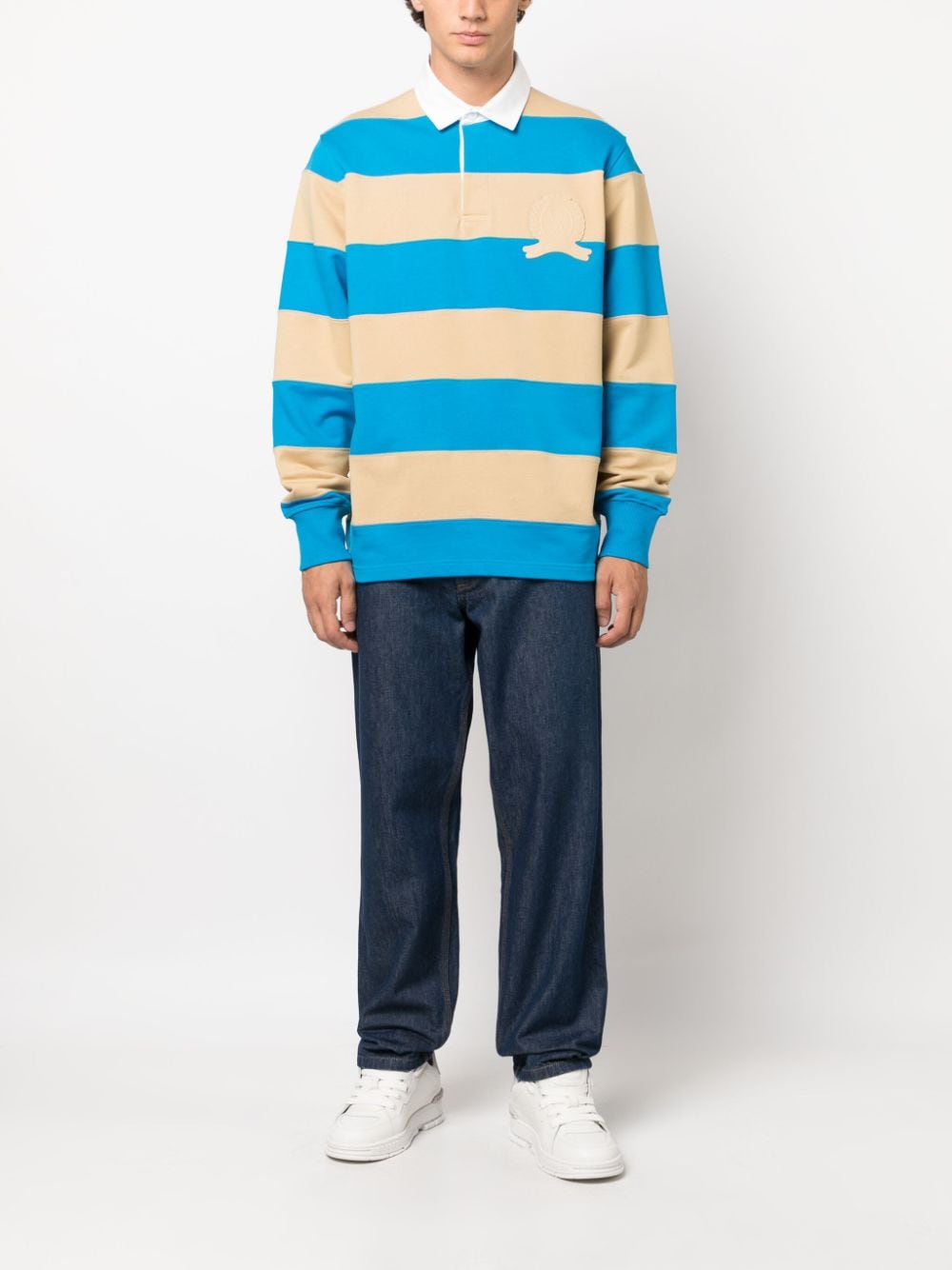 logo-patch striped cotton polo shirt