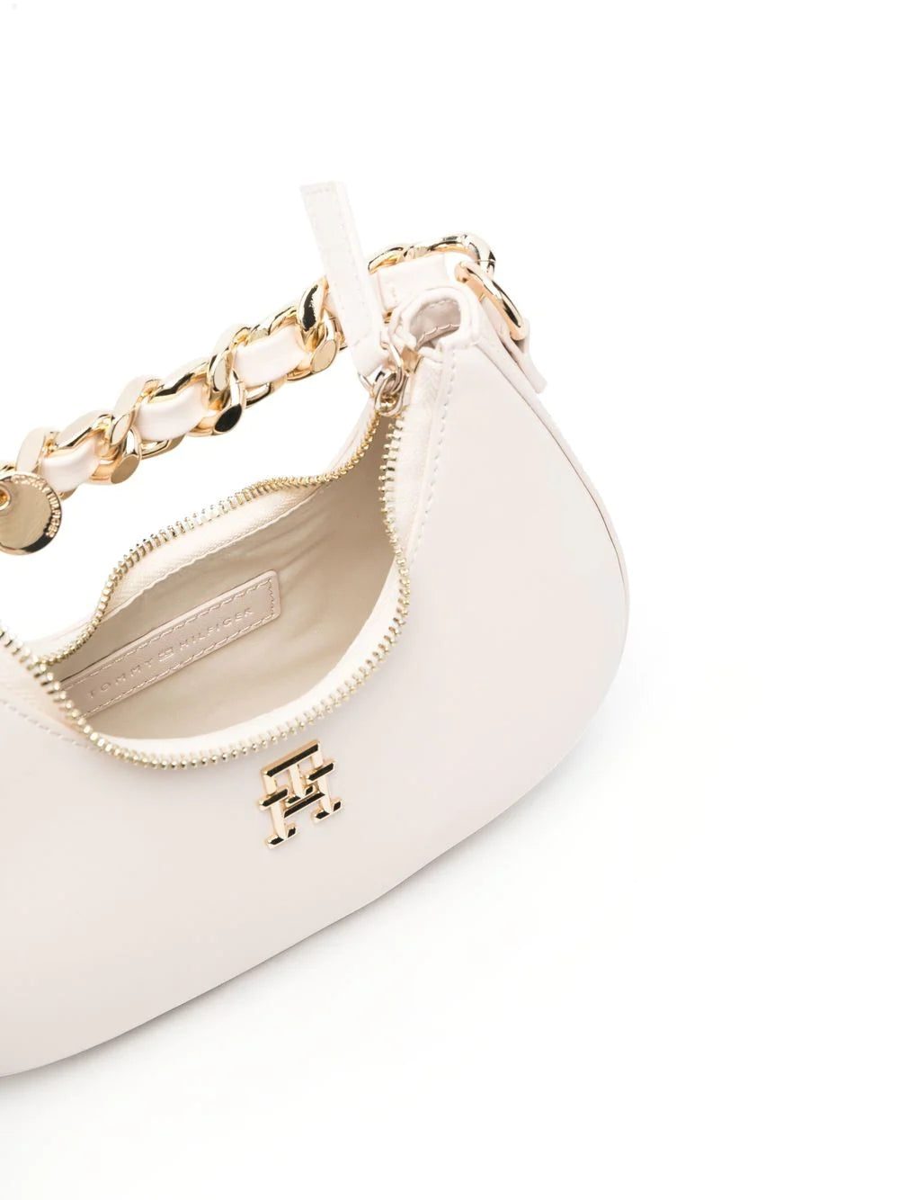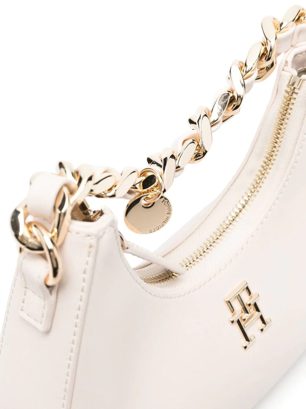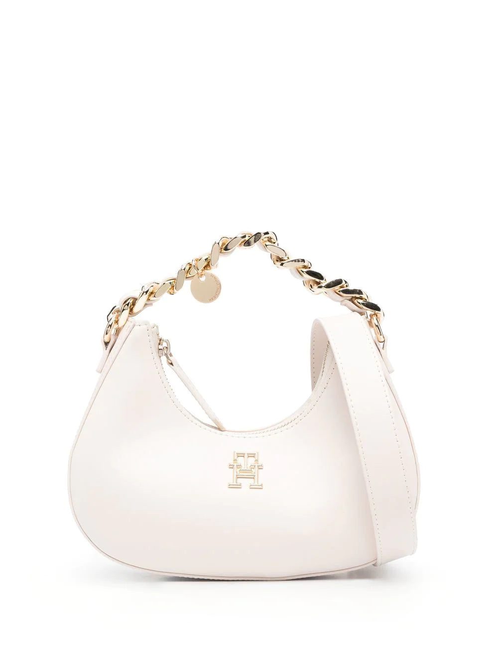 Tommy Hilfiger demonstrates its penchant for logomania with this faux-leather tote bag. Imagined in a gold-tone that matches the chain-link top handle, the brand's recognisable logo plaque takes focus in the design.