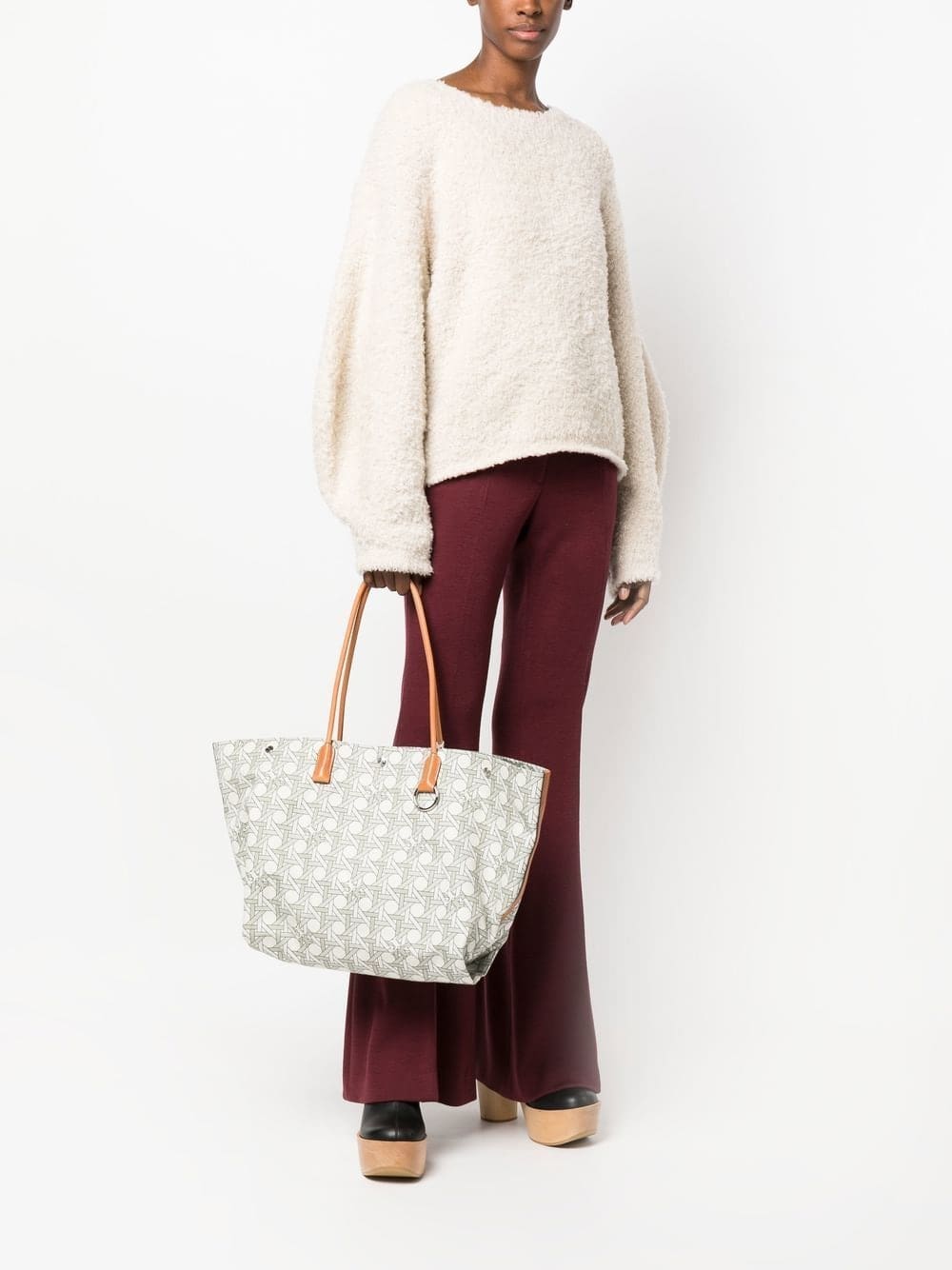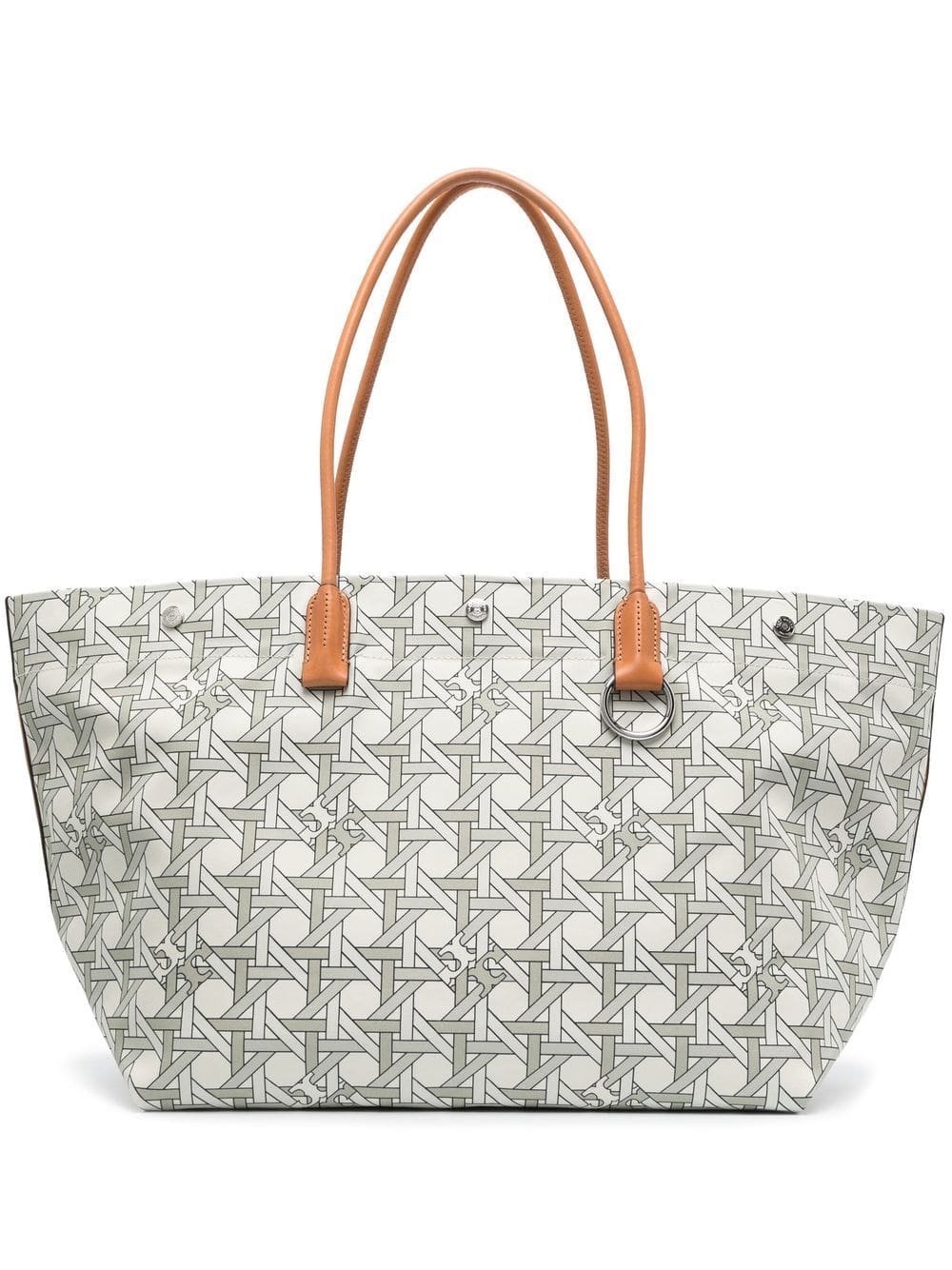 basketweave-print tote bag