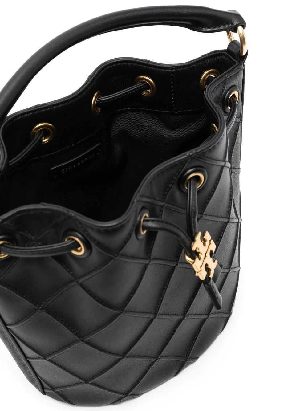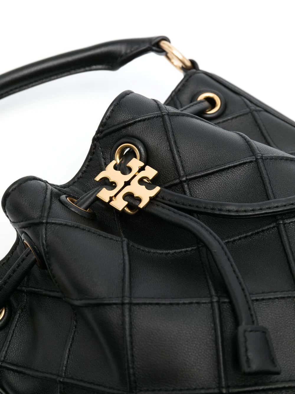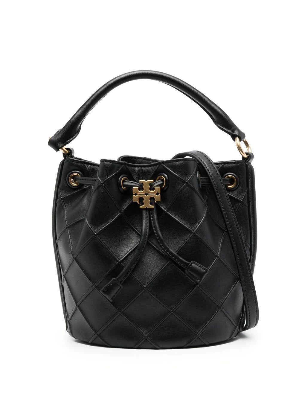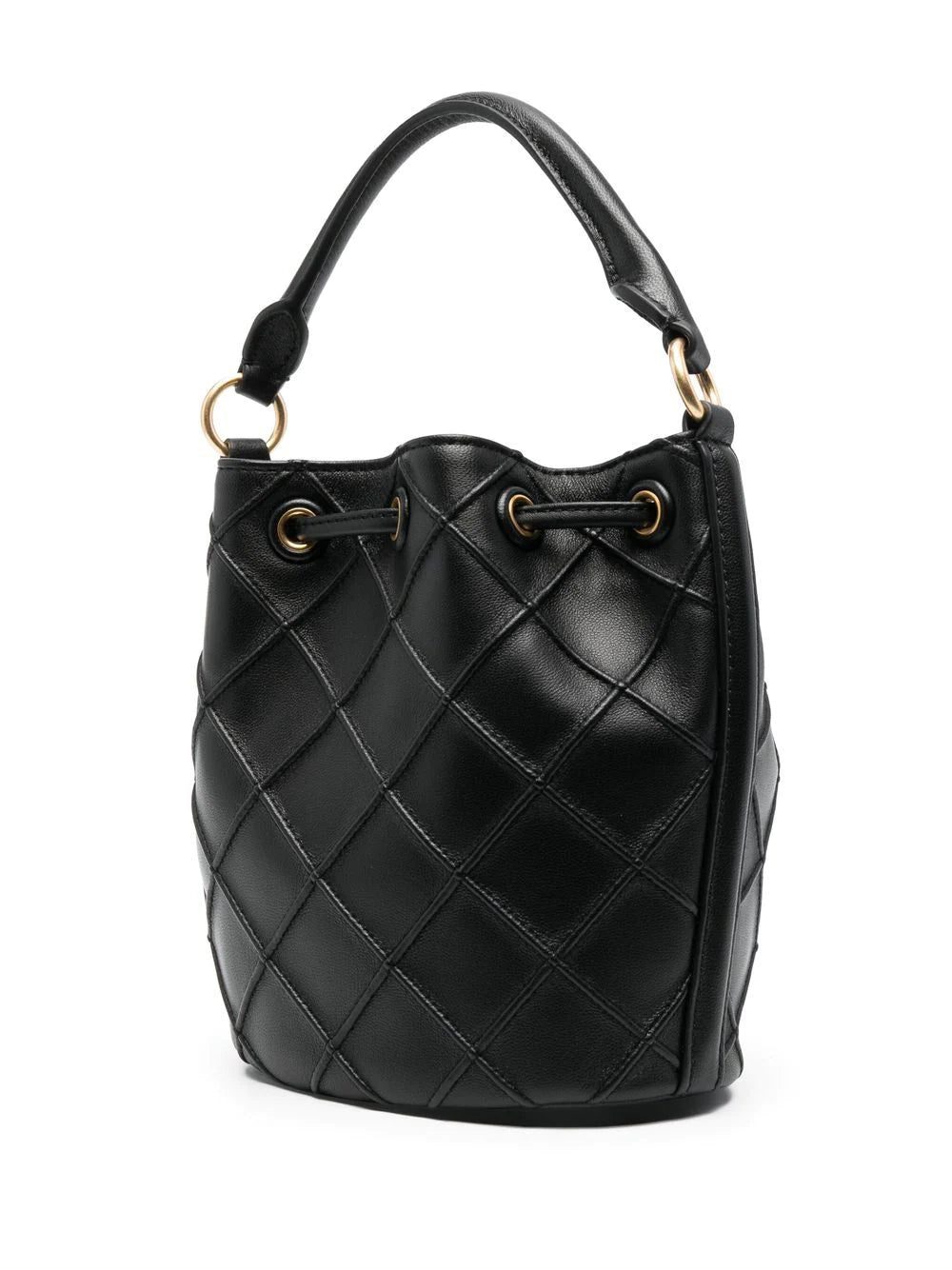 Crafted with a signature Tory Burch elegance, this bucket back is crafted from supple lambskin leather. It boasts a romantic stitched diamond pattern and is finished with the house's iconic Double T logo plaque in a gold-tone hue.