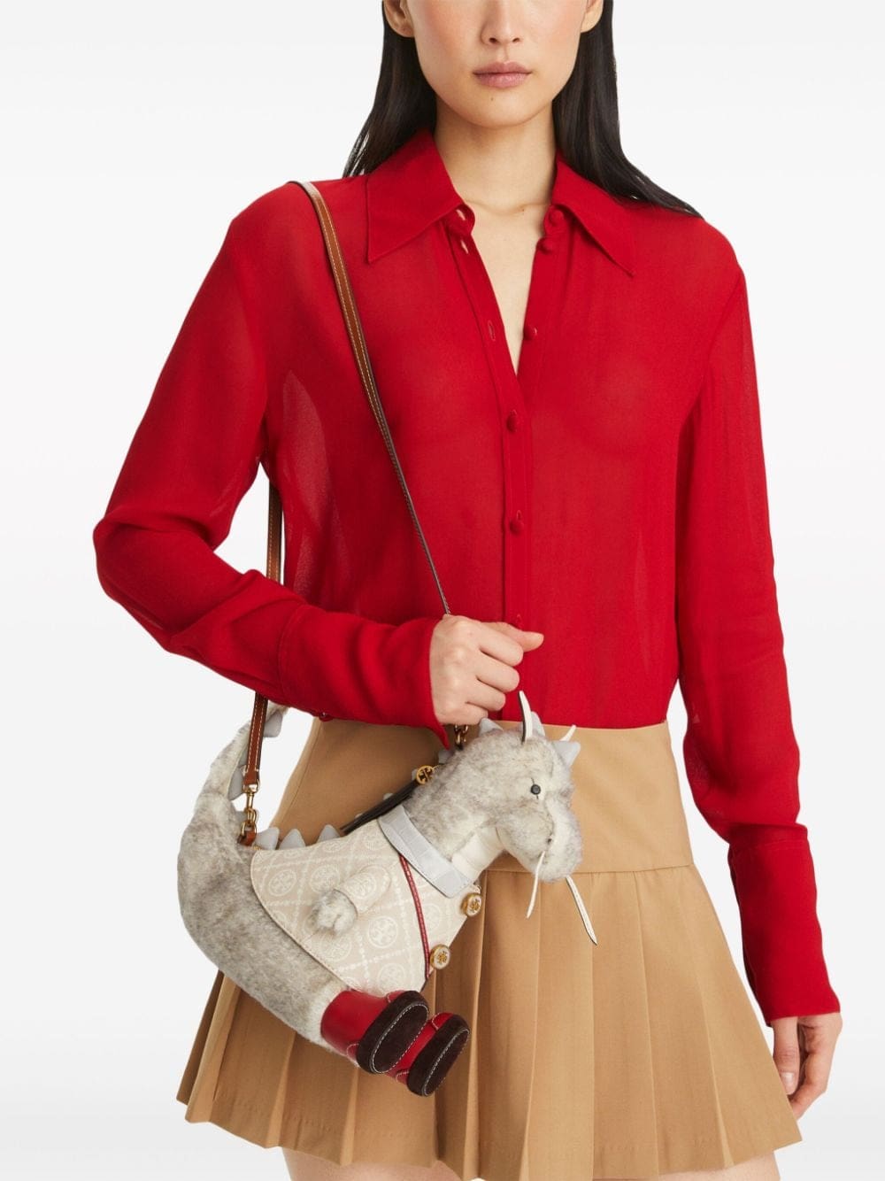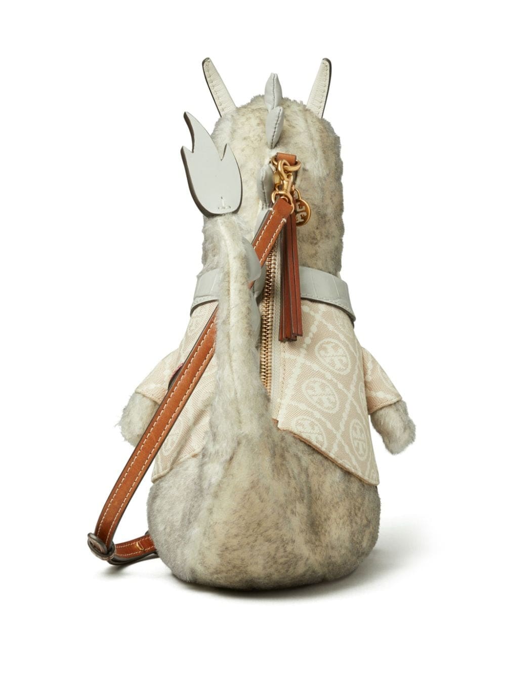 Tory Burch celebrates the Year of the Dragon with a limited edition bag collection. This mini bag, depicting the mythical creature, wears a woven T monogram jacket, alluding to the brand’s rich heritage.
