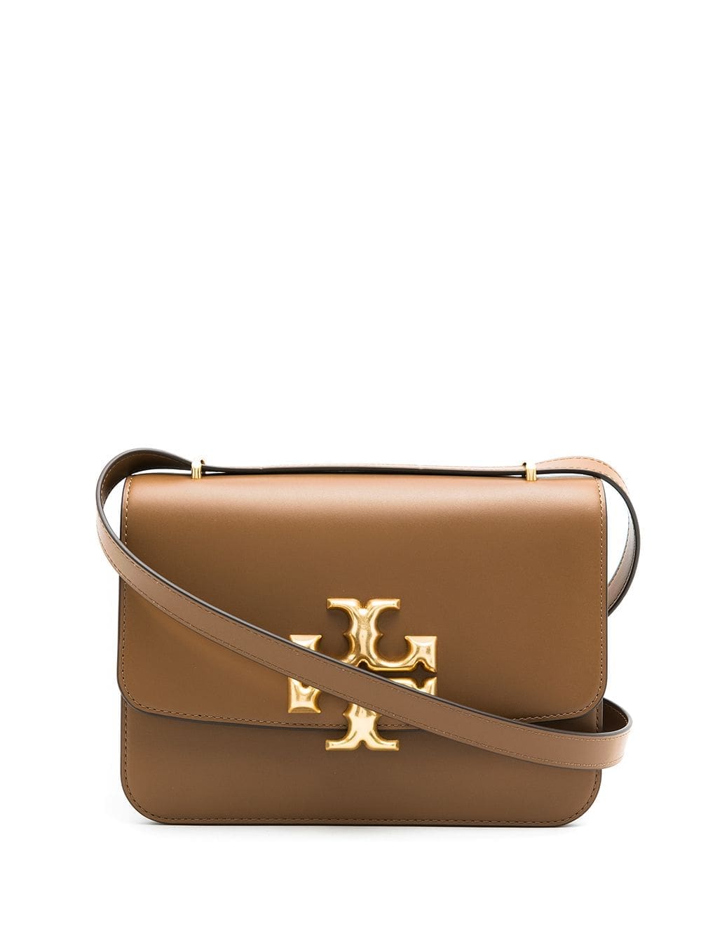 light brown leather gold-tone logo plaque gold-tone hardware foldover top internal zip pocket internal slip pocket adjustable detachable shoulder strap