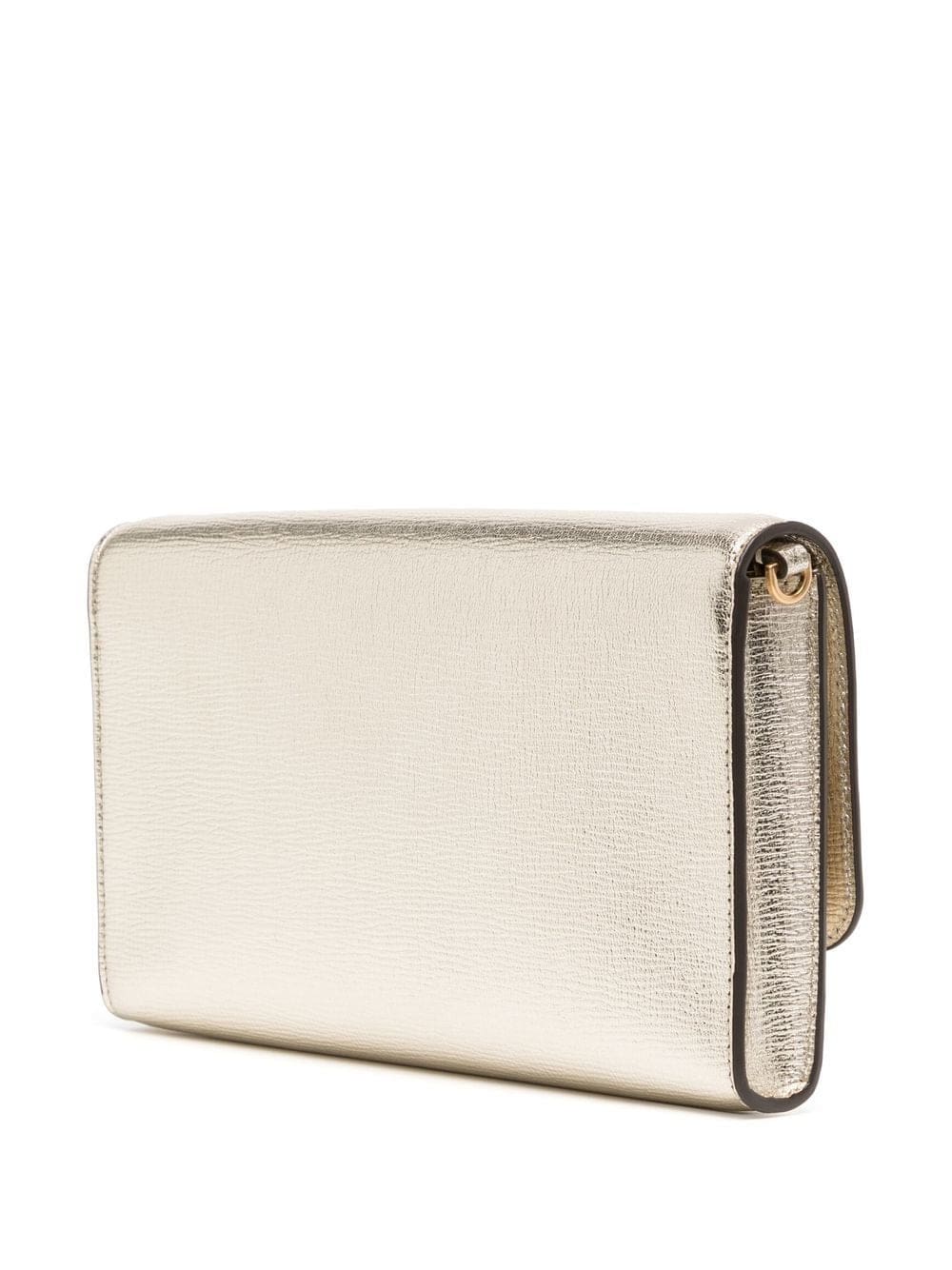 gold-tone leather gold-tone logo plaque foldover top detachable chain-link shoulder strap rectangle body gold-tone hardware