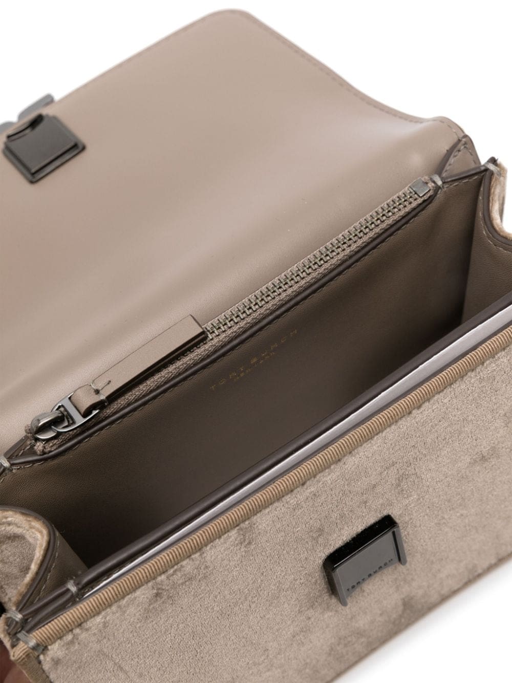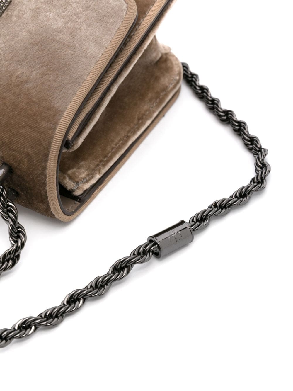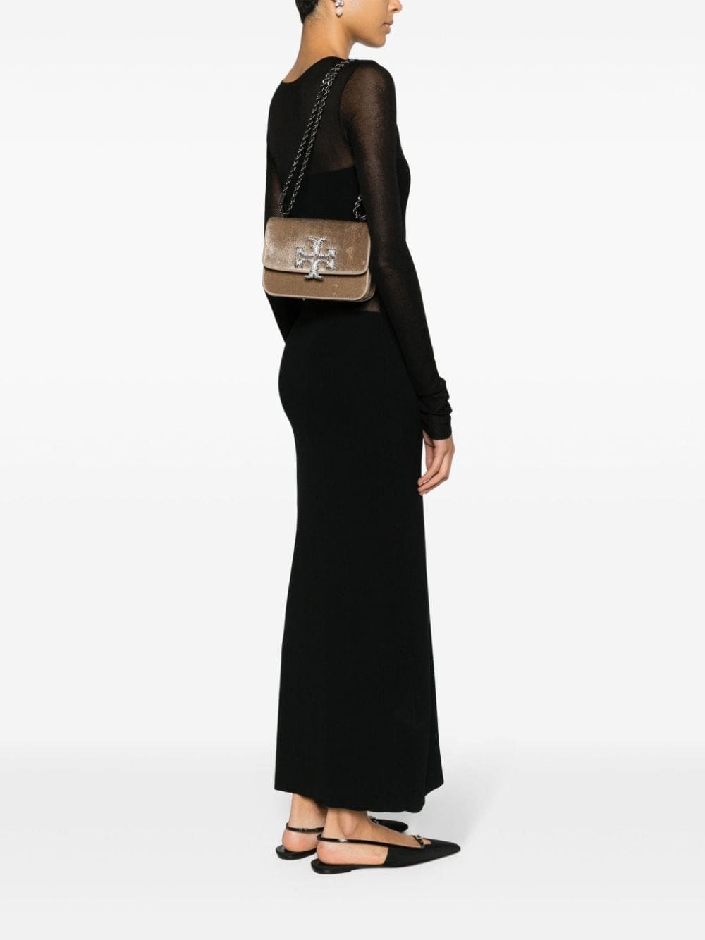 This Eleanor bag is a smaller iteration of Tory Burch’s most celebrated silhouette. It’s crafted from plush velvet and adorned with a Double T plaque at the front and a silver-tone metal chain strap.