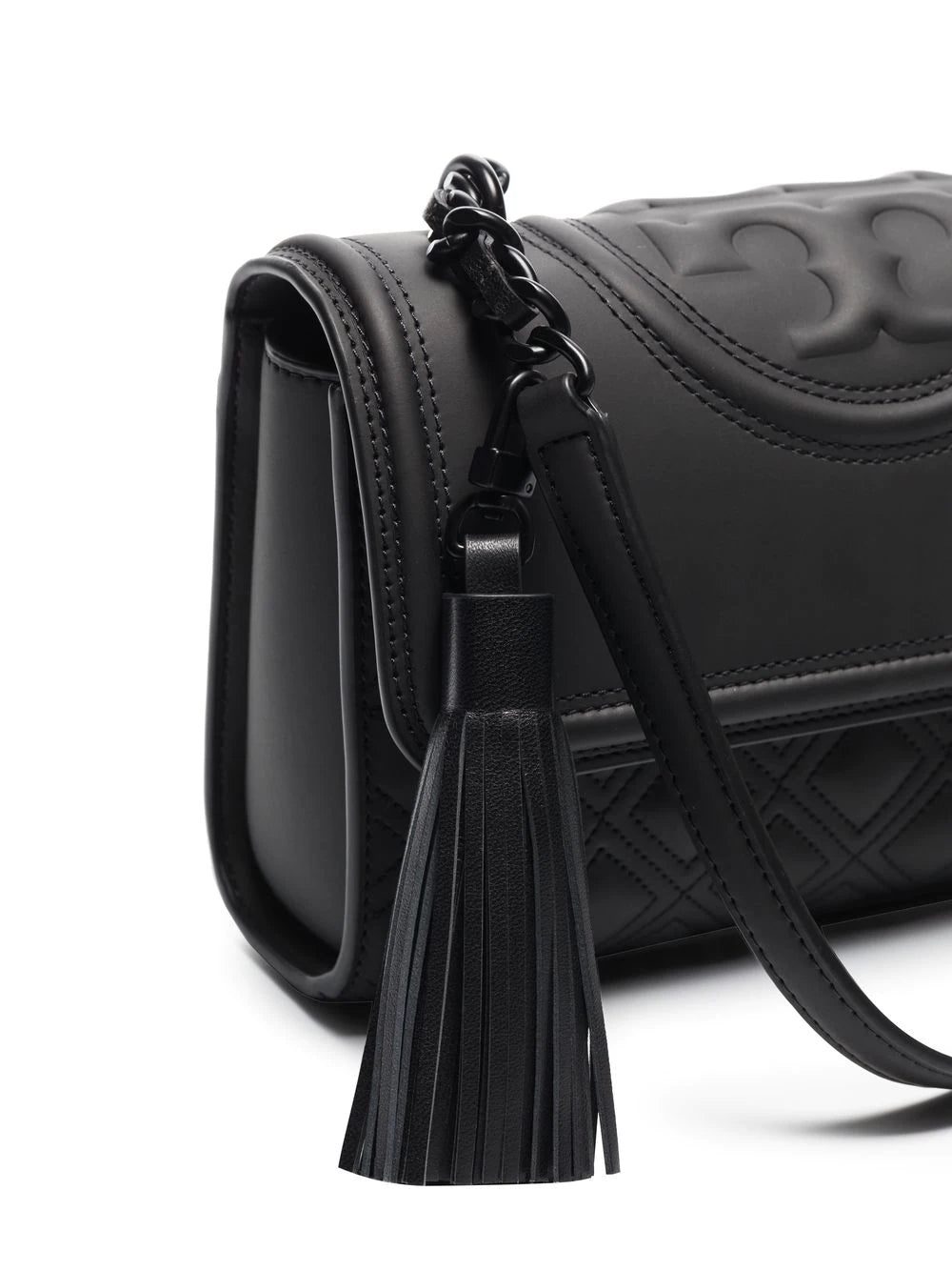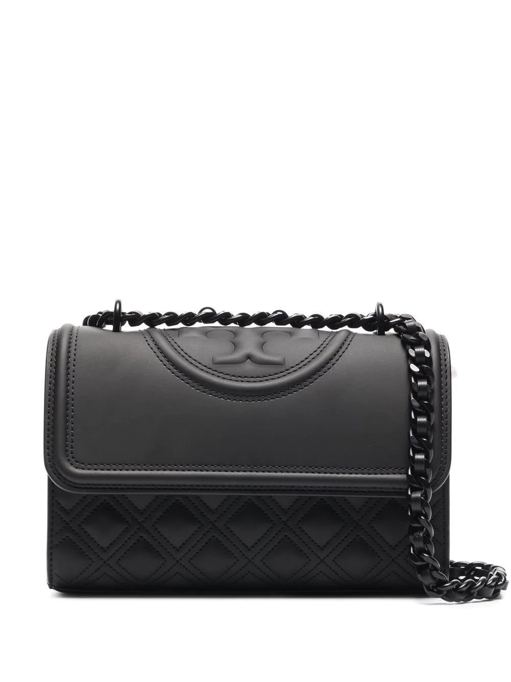 Tory Burch's monogram was created in 2004 and has been the only icon used ever since. Inspired by a design from David Hicks; a Moroccan interior designer in the '70s, it is showcased on this shoulder bag in an innovative way, as a tonal embossed design.
