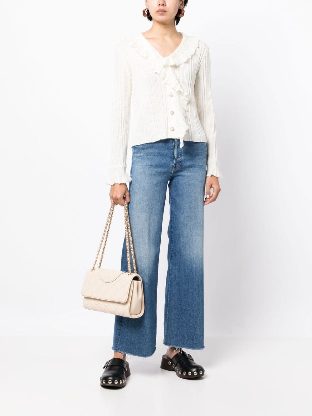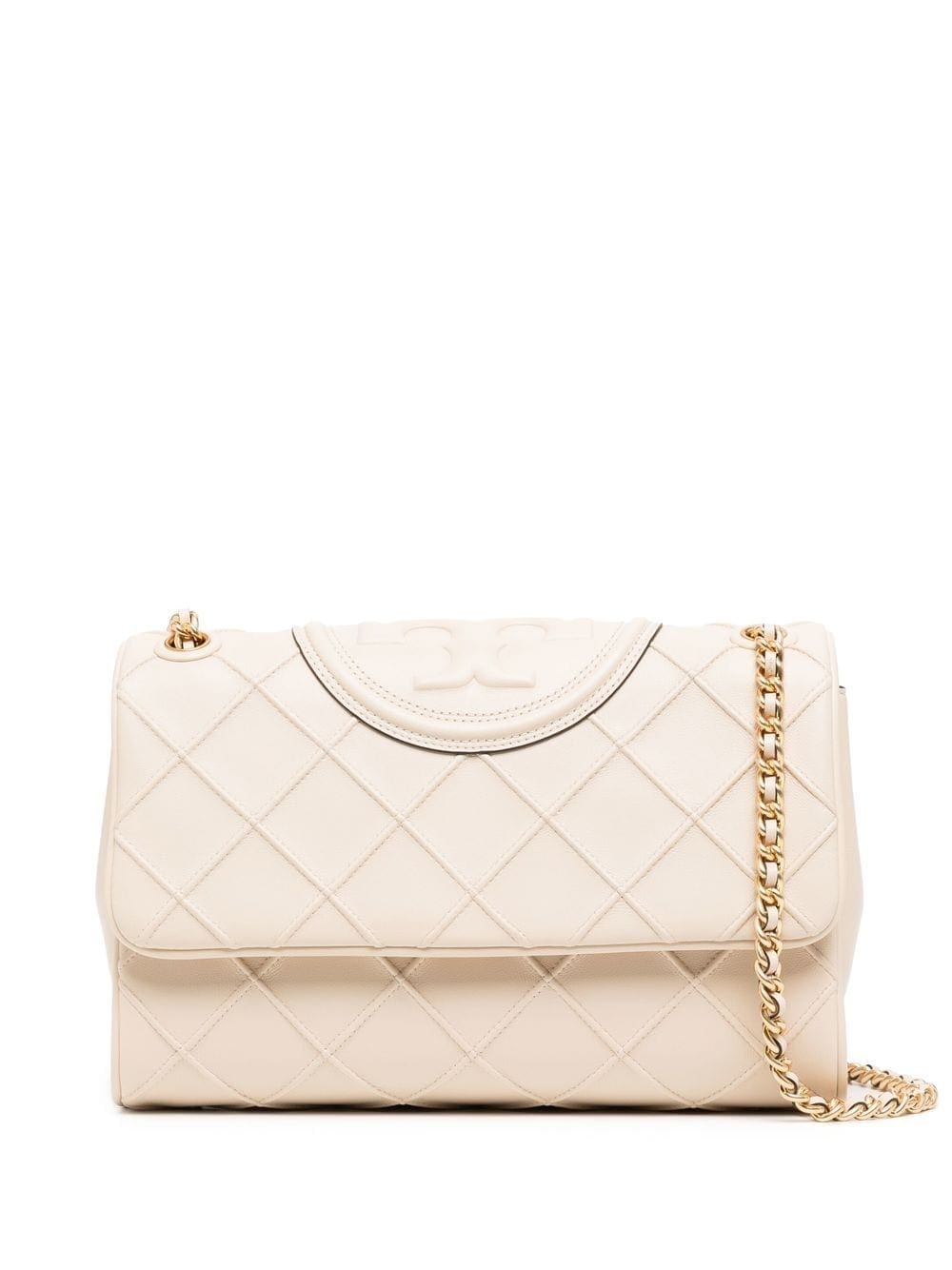 An ode to Tory Burch's craftsmanship, the brand introduces the Fleming shoulder bag for AW22. Appearing here in a versatile cream-white shade, it stands out with its diamond-pattern pintucks and oversized Double T logo in a bombé debossing.