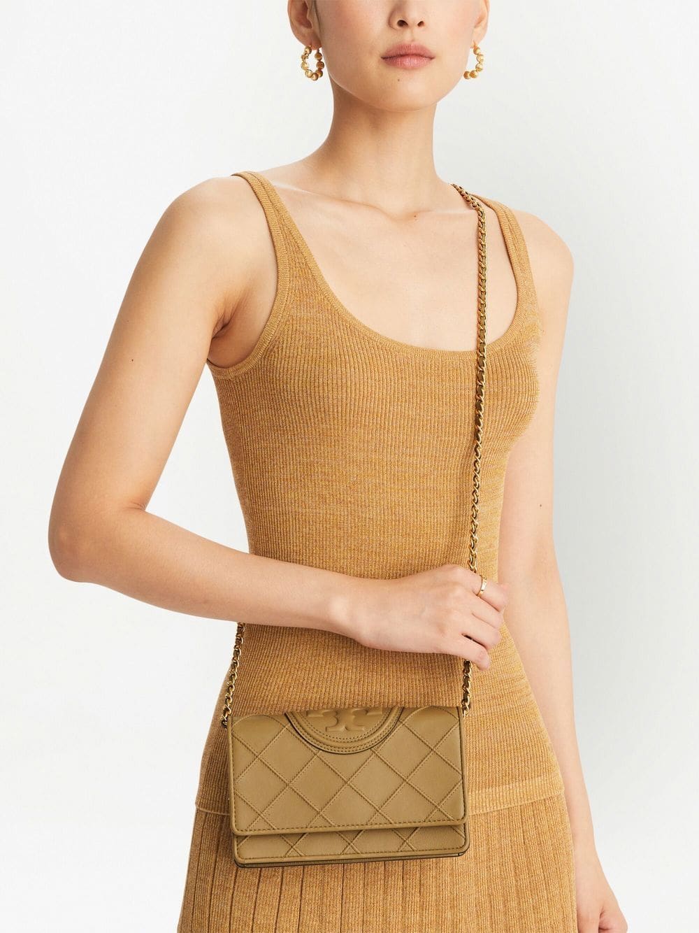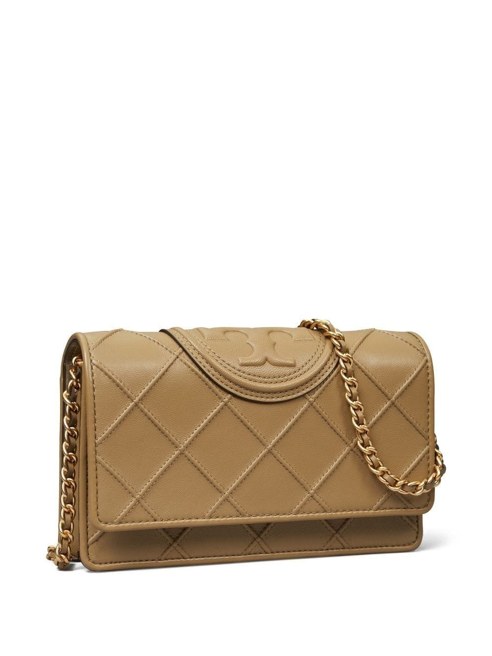 pebblestone green leather signature Double T motif diamond pattern pintuck detailing gold-tone hardware detachable leather and chain-link shoulder strap foldover top with magnetic fastening internal zip-fastening pocket