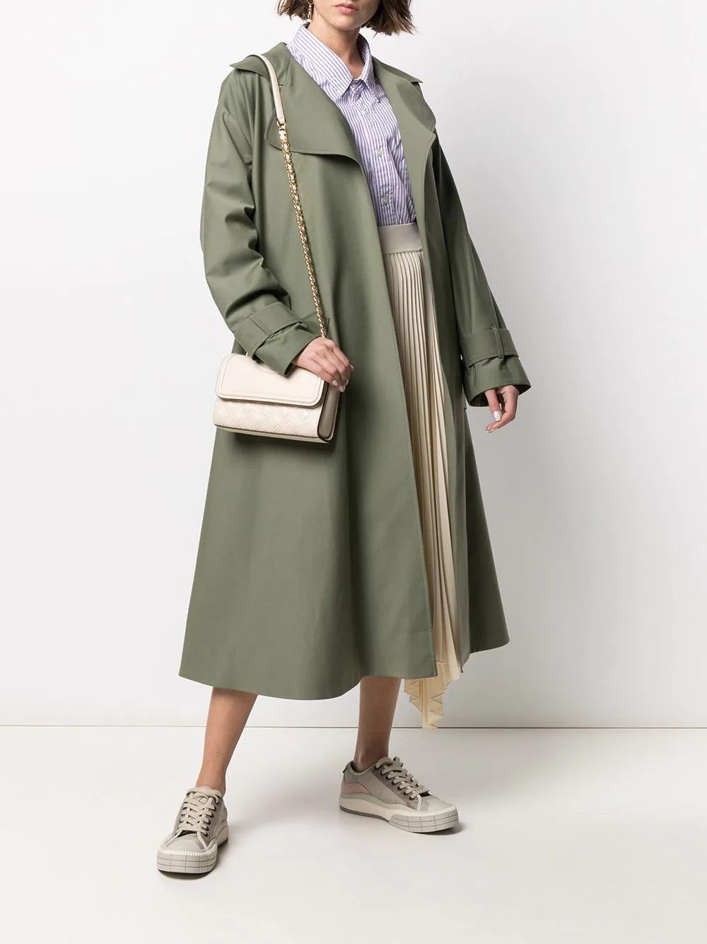 New cream embossed and quilted cross-body bag from TORY BURCH featuring embossed logo to the front, quilted finish, foldover top, chain-link shoulder strap and tassel detail.