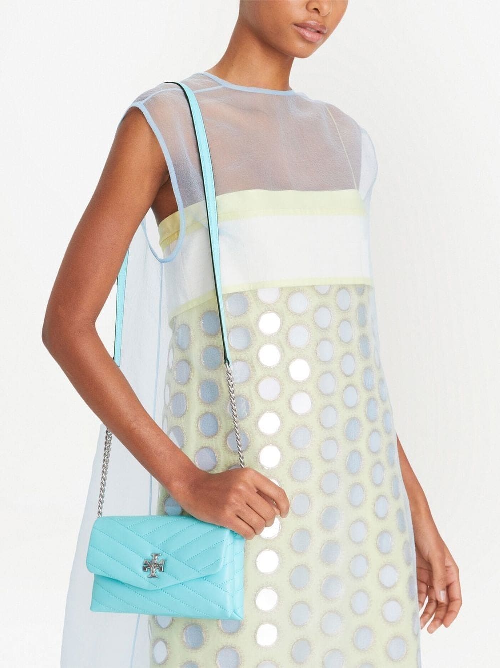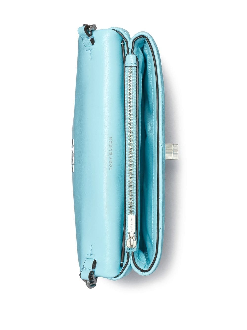 celeste blue leather chevron quilting logo plaque foldover top twist-lock fastening leather and chain-link shoulder strap internal zip-fastening pocket full lining