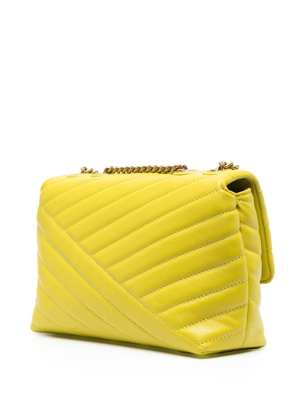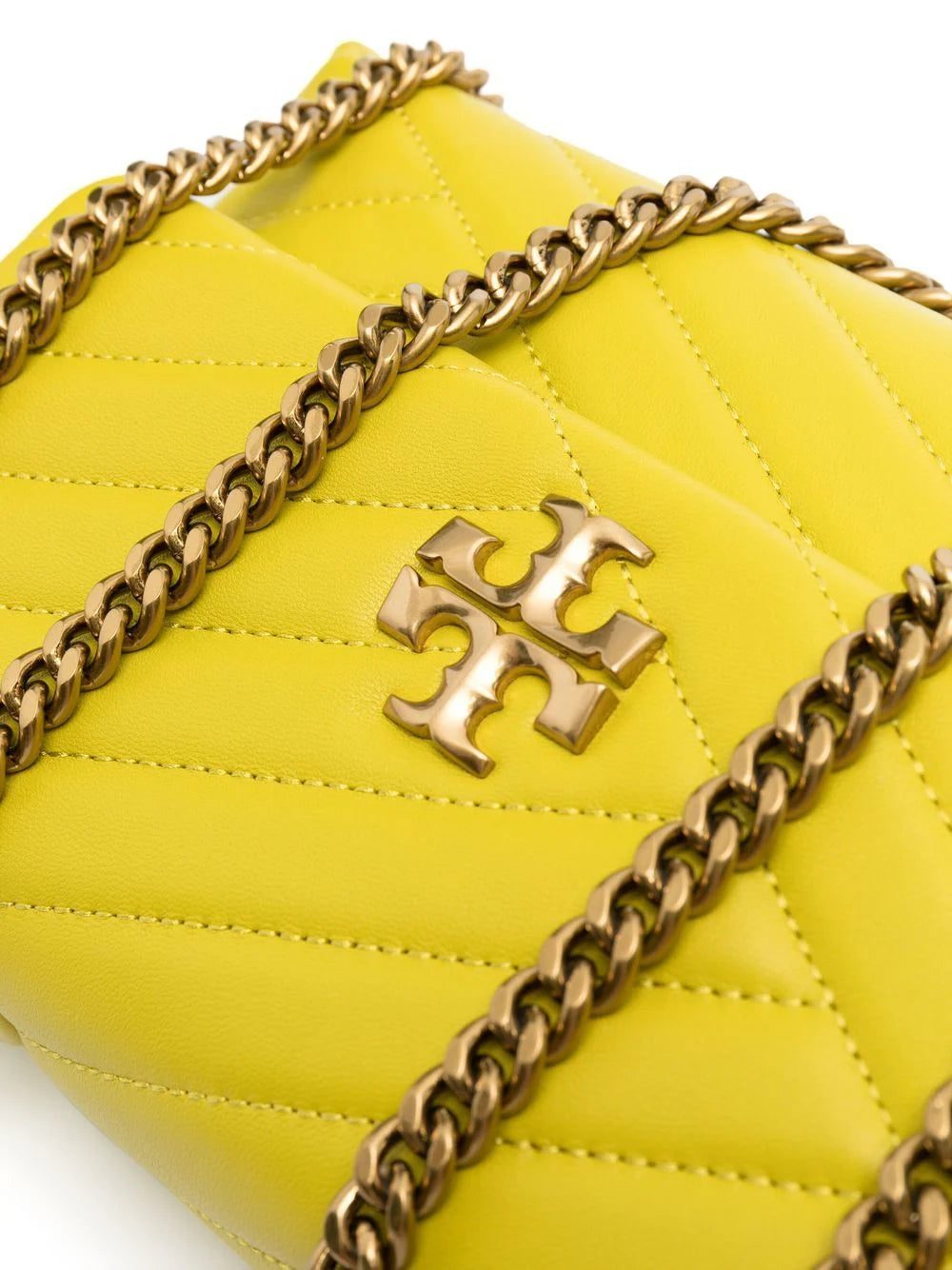 Kira chevron shoulder bag from TORY BURCH featuring lime green, quilted, logo plaque, foldover top, clasp fastening, chain-link shoulder strap, main compartment, internal zip-fastening pocket, full lining, internal logo patch and full lining.