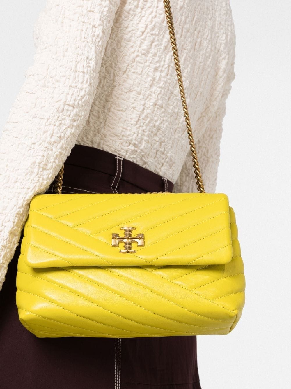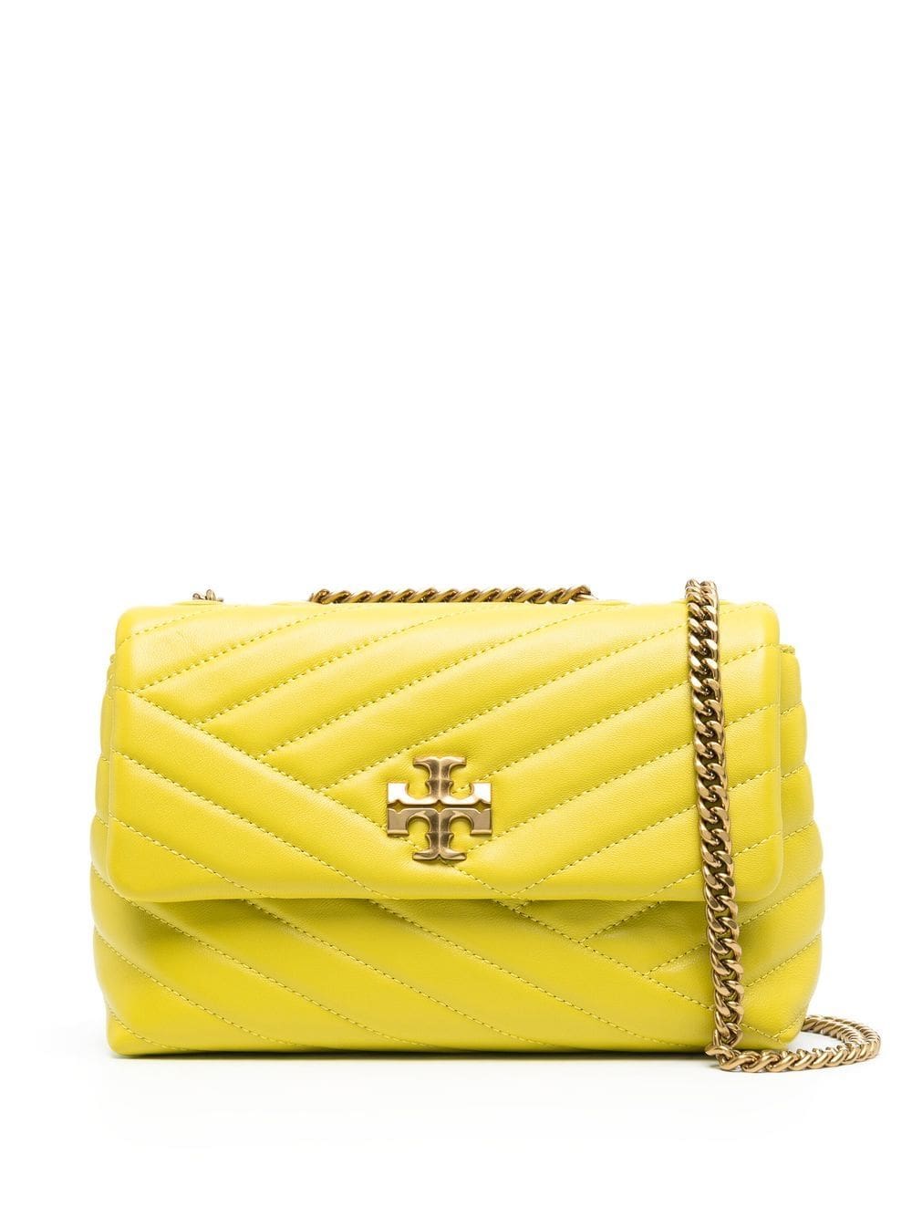 island chartreuse green quilted logo plaque foldover top clasp fastening chain-link shoulder strap main compartment internal zip-fastening pocket full lining internal logo patch full lining