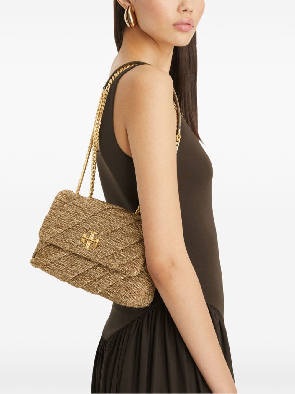 Kira logo-plaque raffia shoulder bag