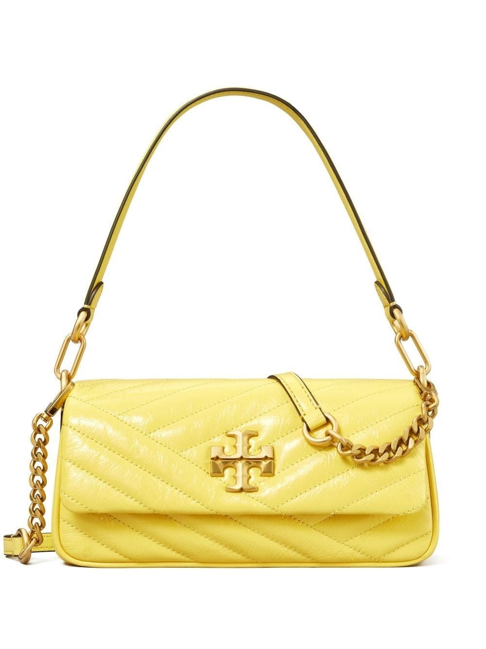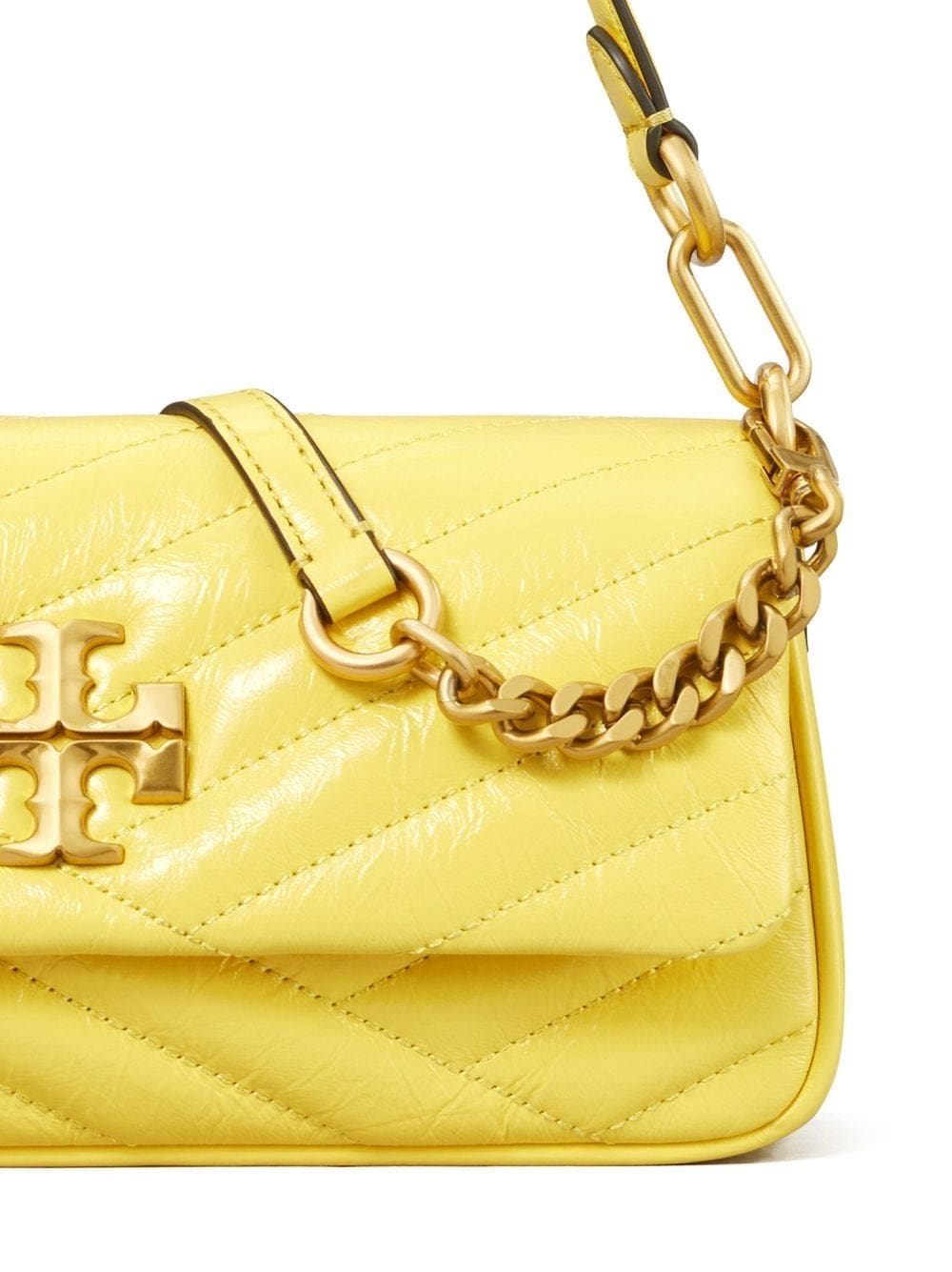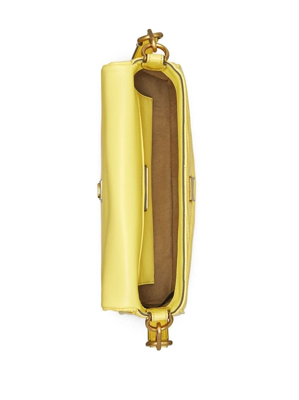 yellow calf leather patent finish gold-tone logo plaque foldover top single top handle main compartment internal zip-fastening pocket
