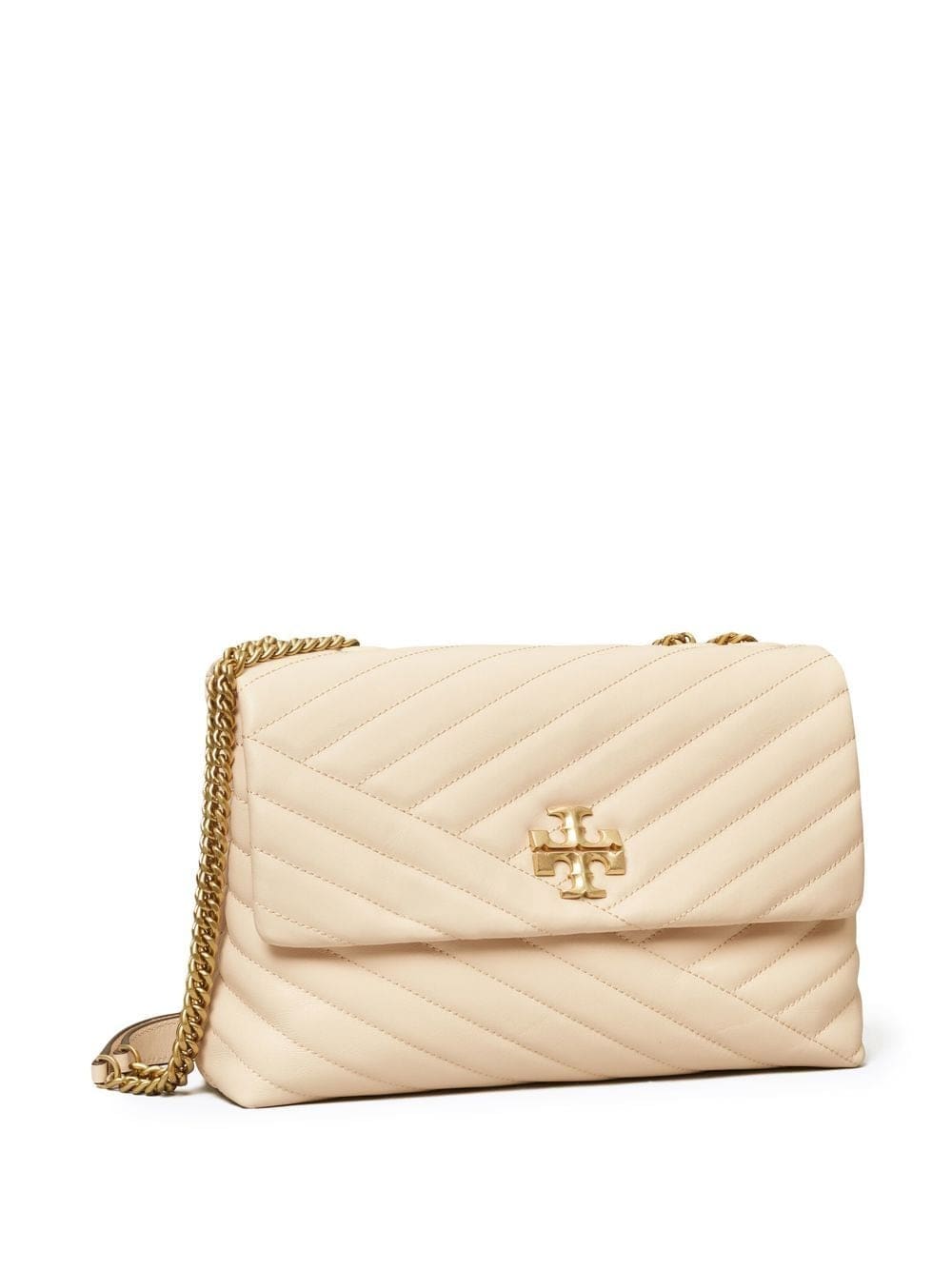cream white leather gold-tone hardware gold-tone logo plaque quilted finish front flap closure leather and chain-link shoulder strap main compartment