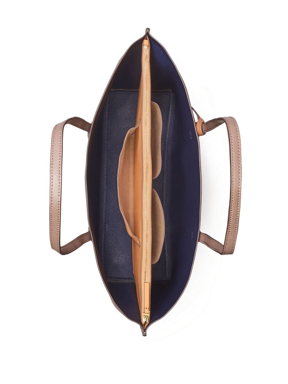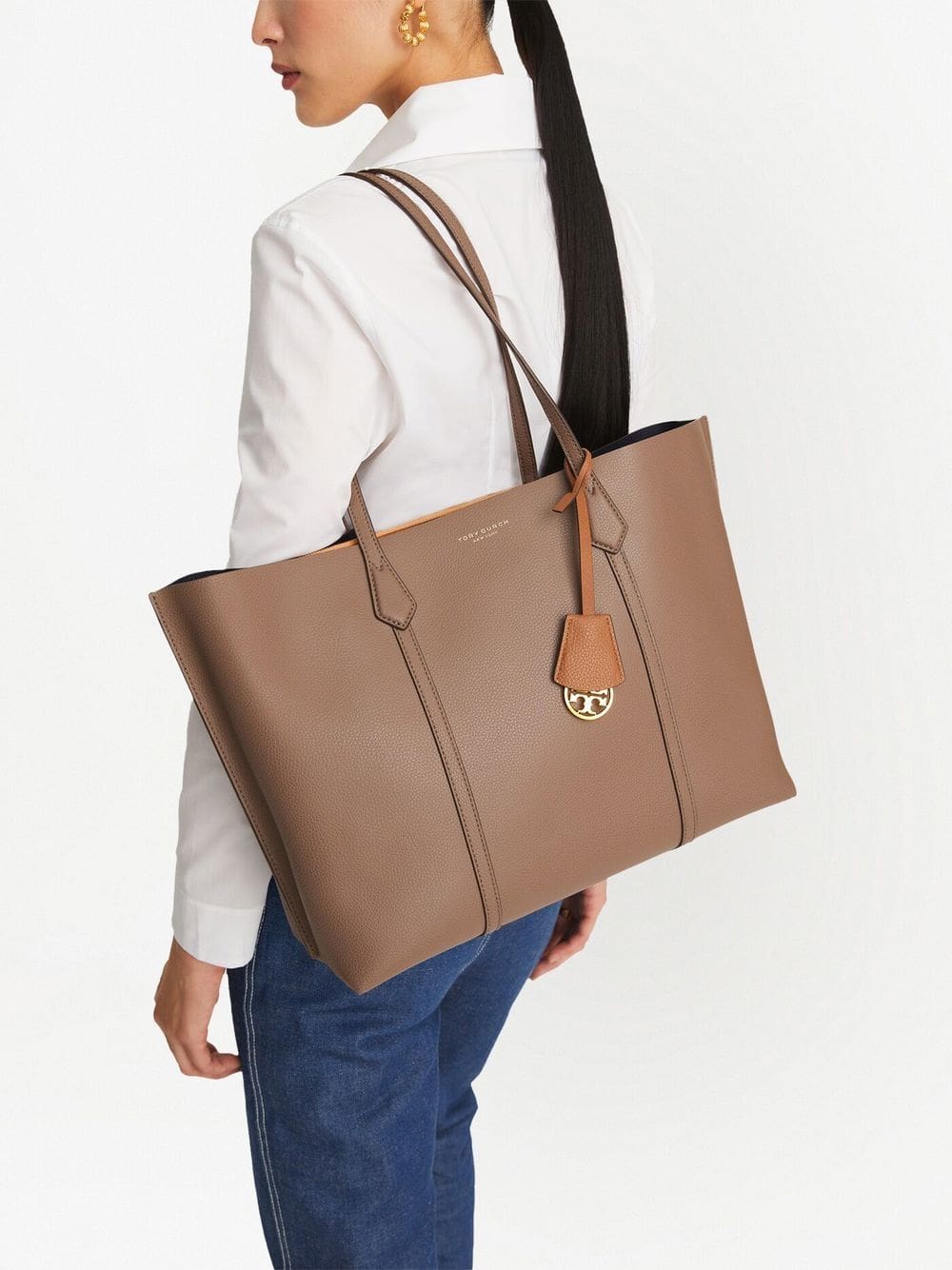 brown leather grained texture logo print to the front gold-tone logo plaque two top handles main compartment