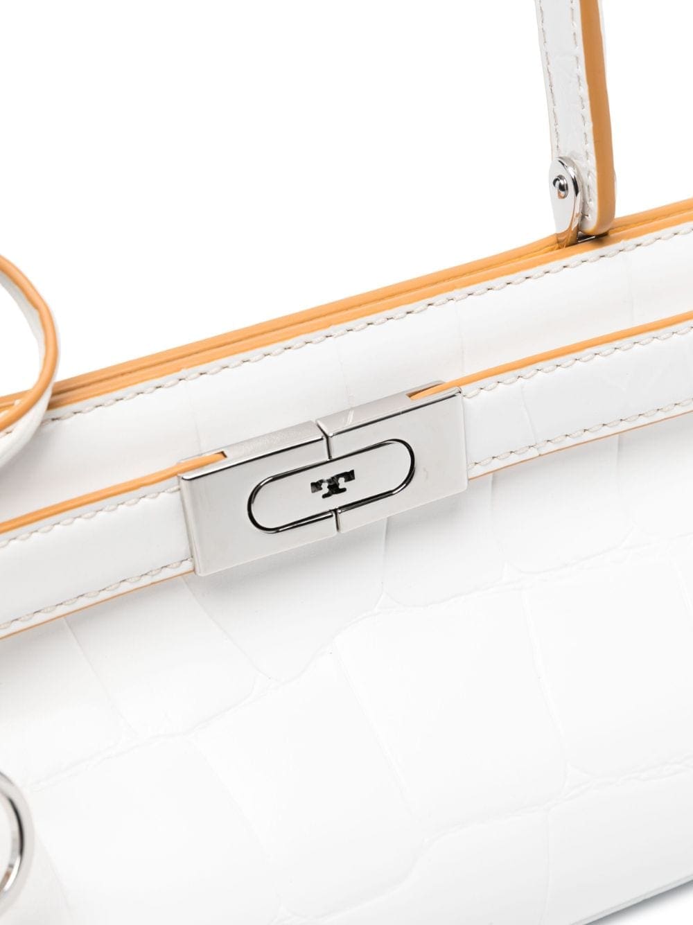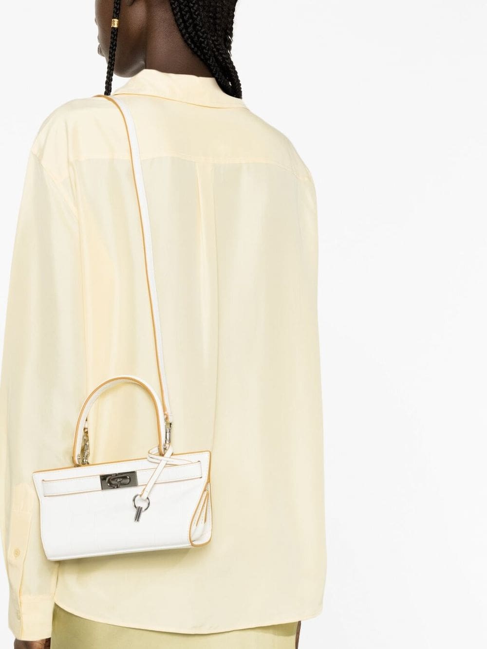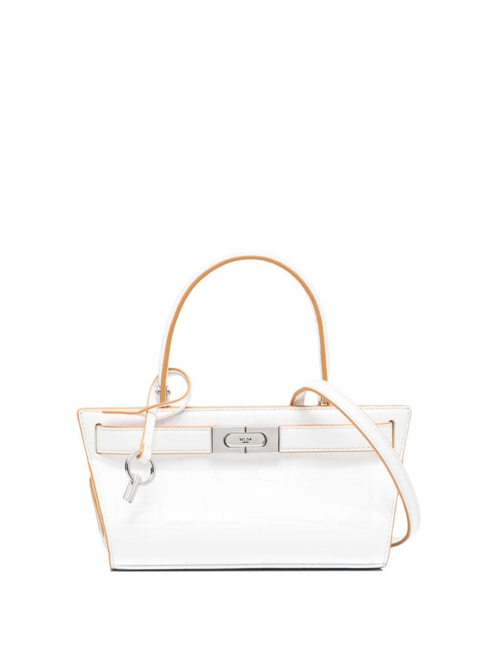 Named after the famed American socialite, this Lee Radziwill tote bag arrives in a contemporary cat-eye silhouette for its SS23 collection. The white accessory is belted at the front featuring a Tory Burch initial buckle closure and is finished with a detachable shoulder strap.