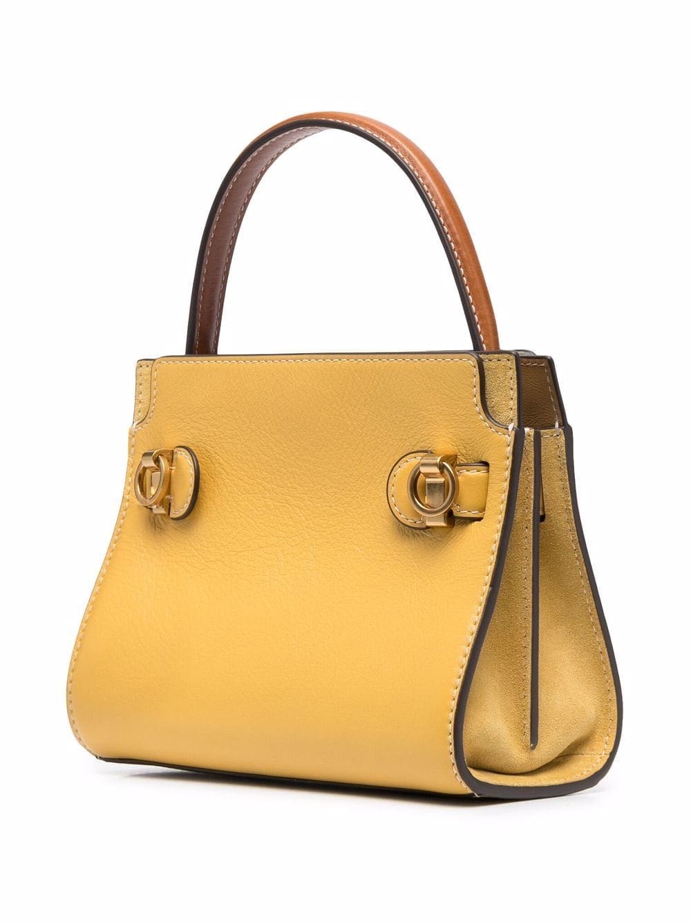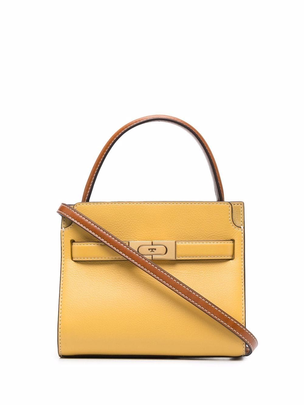 glazed pineapple yellow leather gold-tone hardware front clasp fastening single top handle adjustable detachable shoulder strap main compartment