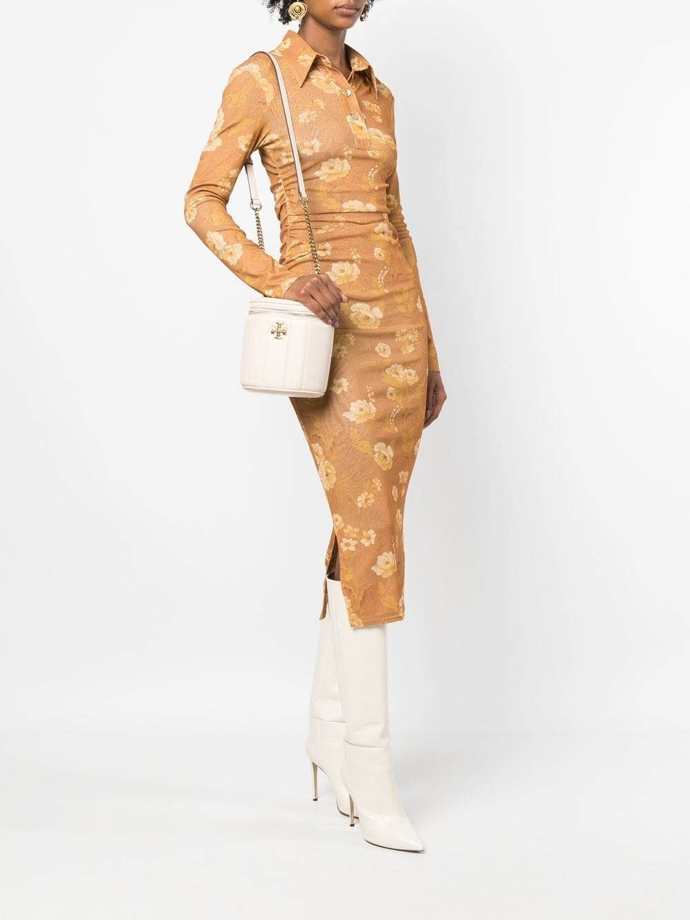 brie beige lambskin matelassé detail gold-tone hardware gold-tone logo plaque leather and chain-link shoulder strap top zip fastening main compartment internal slip pocket