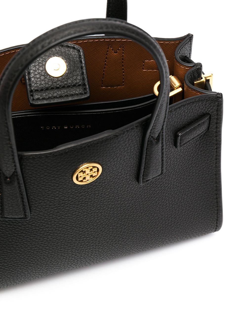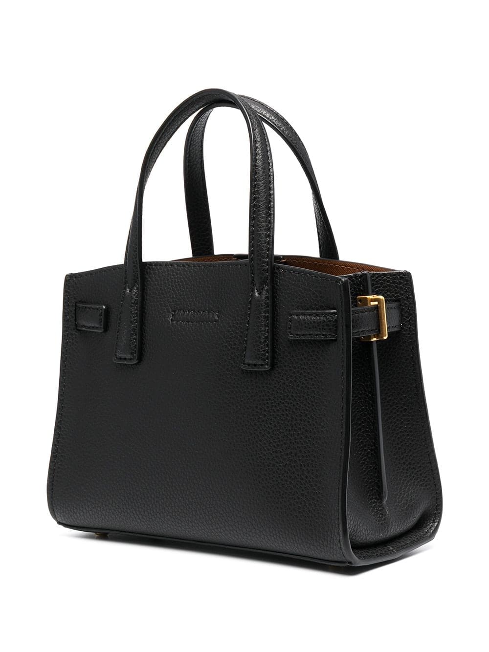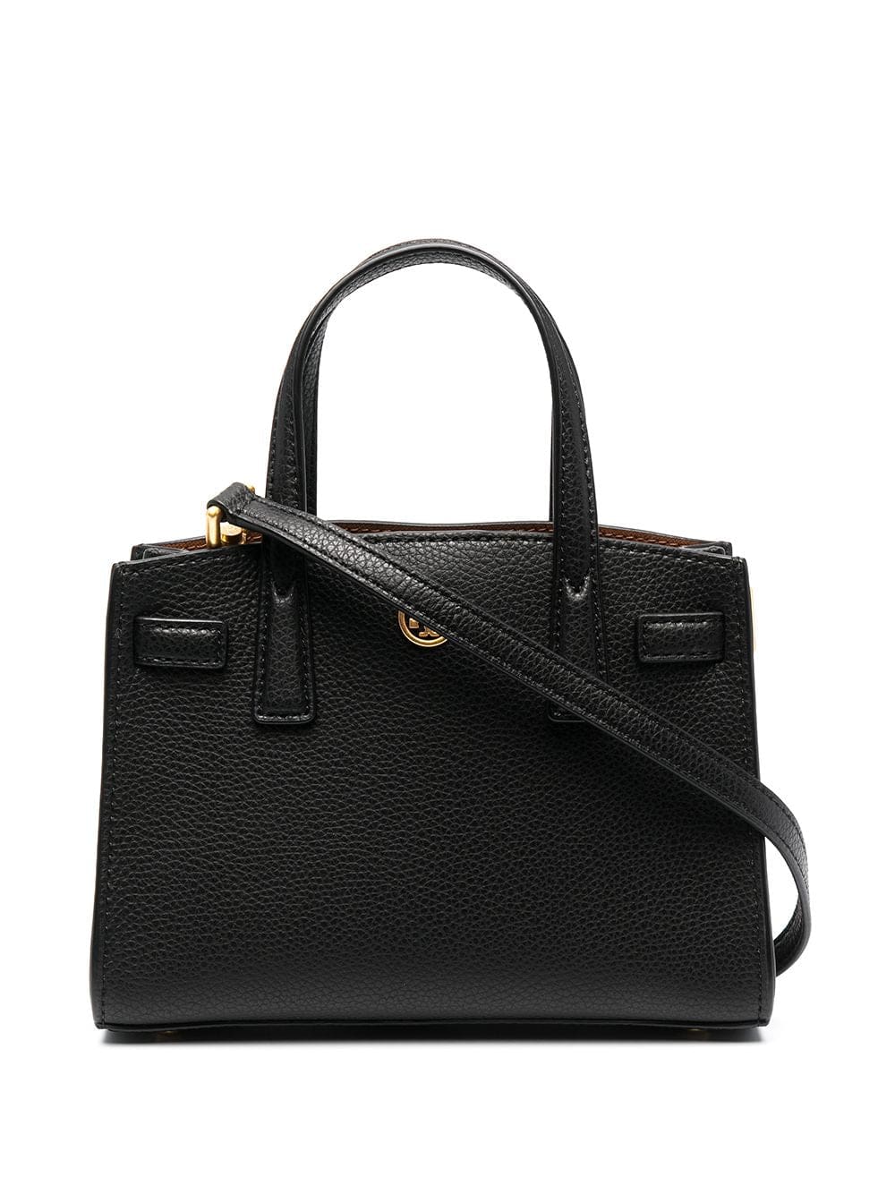 black leather pebbled texture gold-tone logo plaque gold-plated hardware main compartment concealed magnetic fastening two rounded top handles detachable shoulder strap