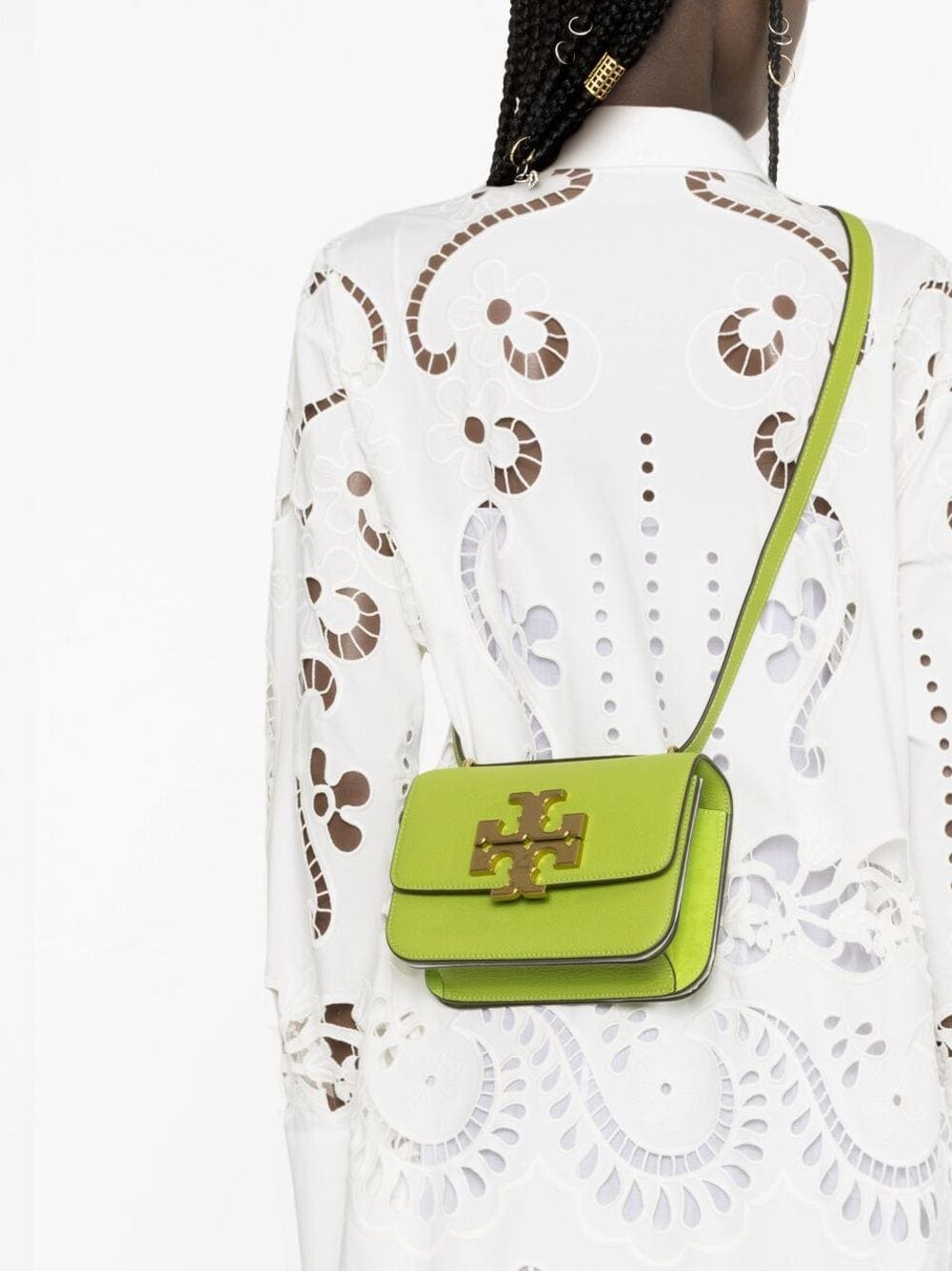Tory Burch's monogram was created in 2004 and has been the only logo used since. Inspired by a design from David Hicks; a Moroccan interior designer in the '70s, it is featured at the front of this shoulder bag in gold-tone hardware, adding an element of opulence to the accessory.