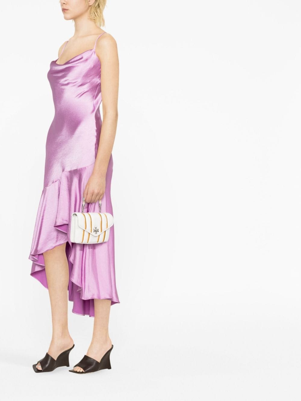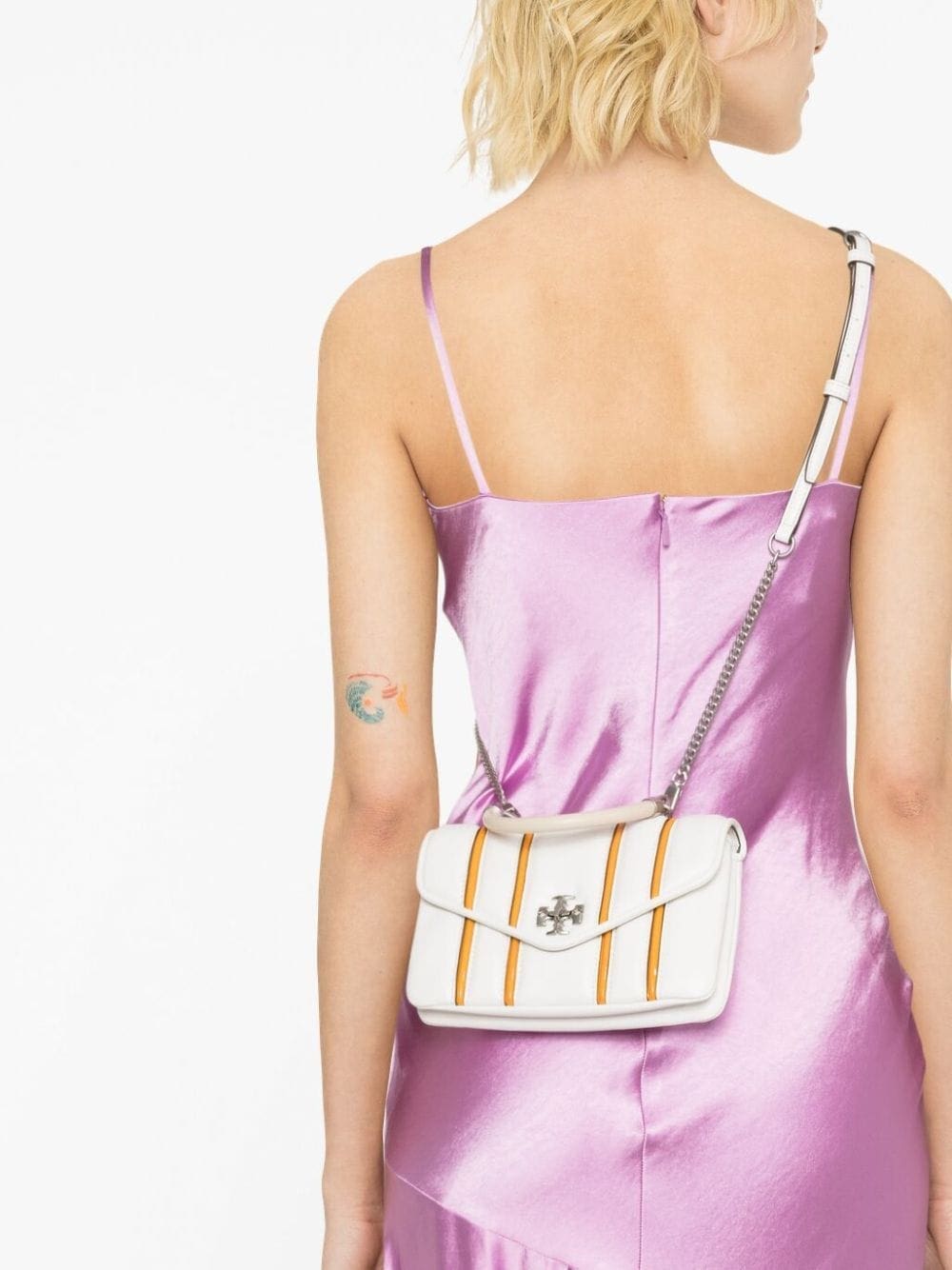 With a penchant for effortless accessories, Tory Burch punctuates this shoulder bag with the brand's signature Double T logo plaque and an intriguing striped design. Meanwhile, this versatile accessory can either be held by the single top handle or worn crossbody thanks to the single shoulder strap.
