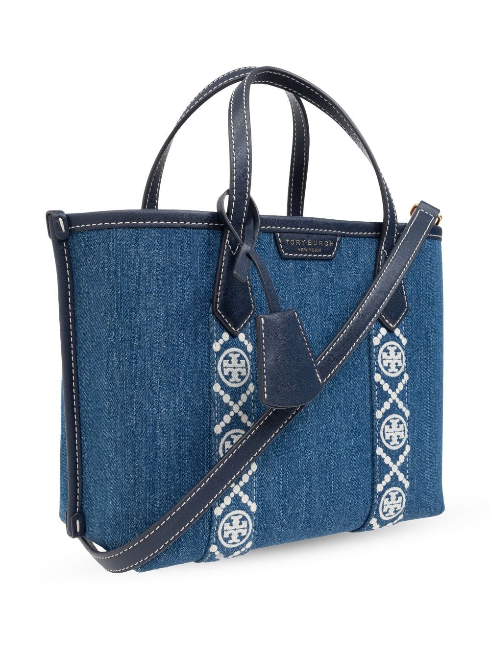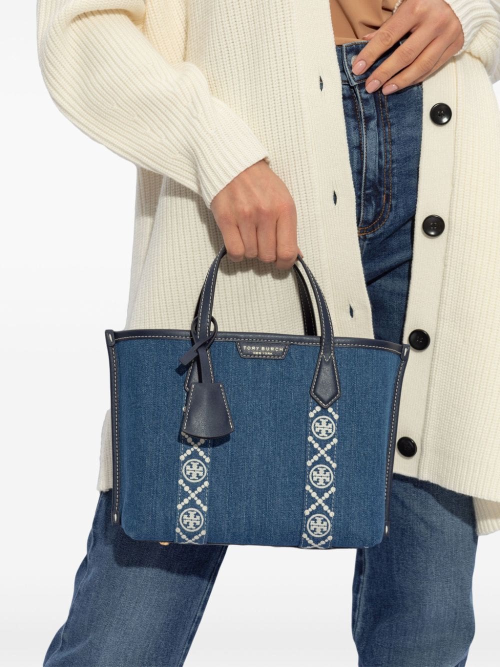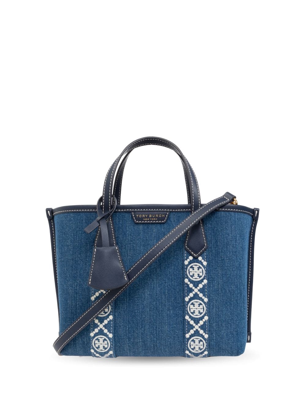 logo-tape denim tote bag