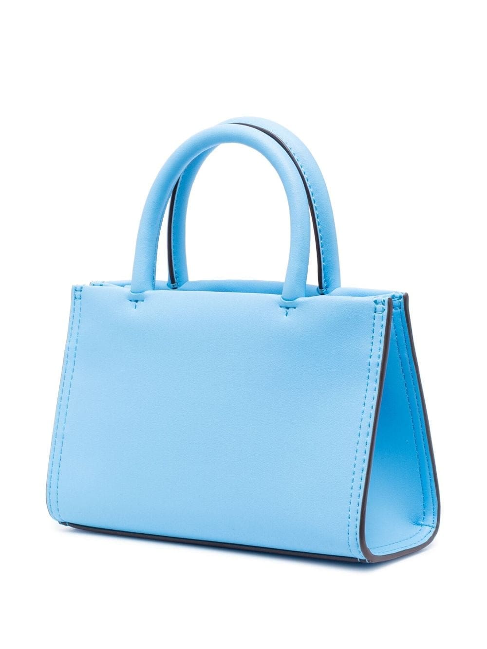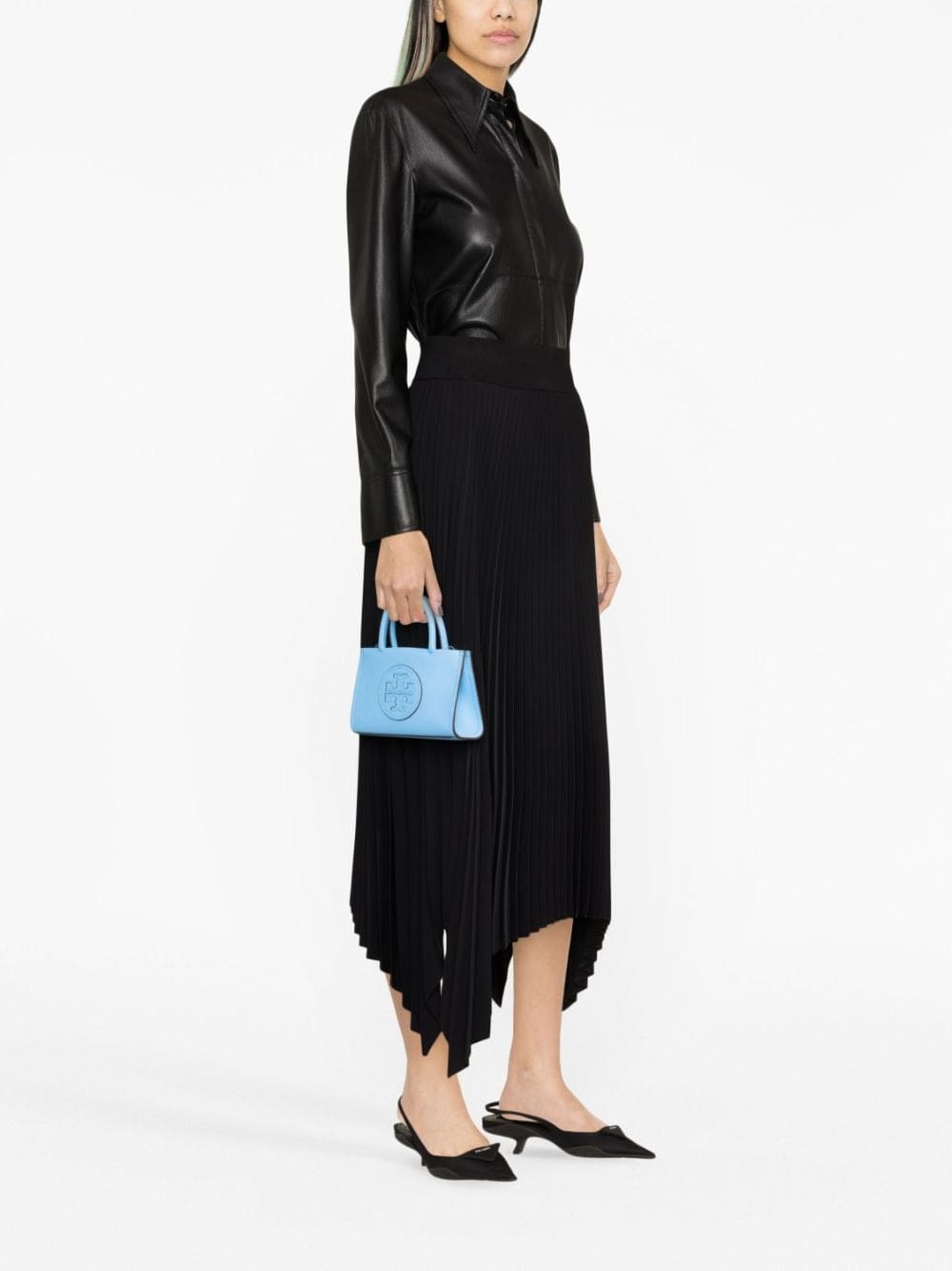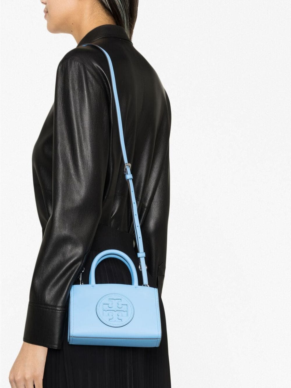 Tory Burch's Double T monogram was introduced in 2004, and takes inspiration from the work of Moroccan interior designer David Hicks. Its showcased as a tonal logo patch at the front of this faux-leather Ella mini bag.