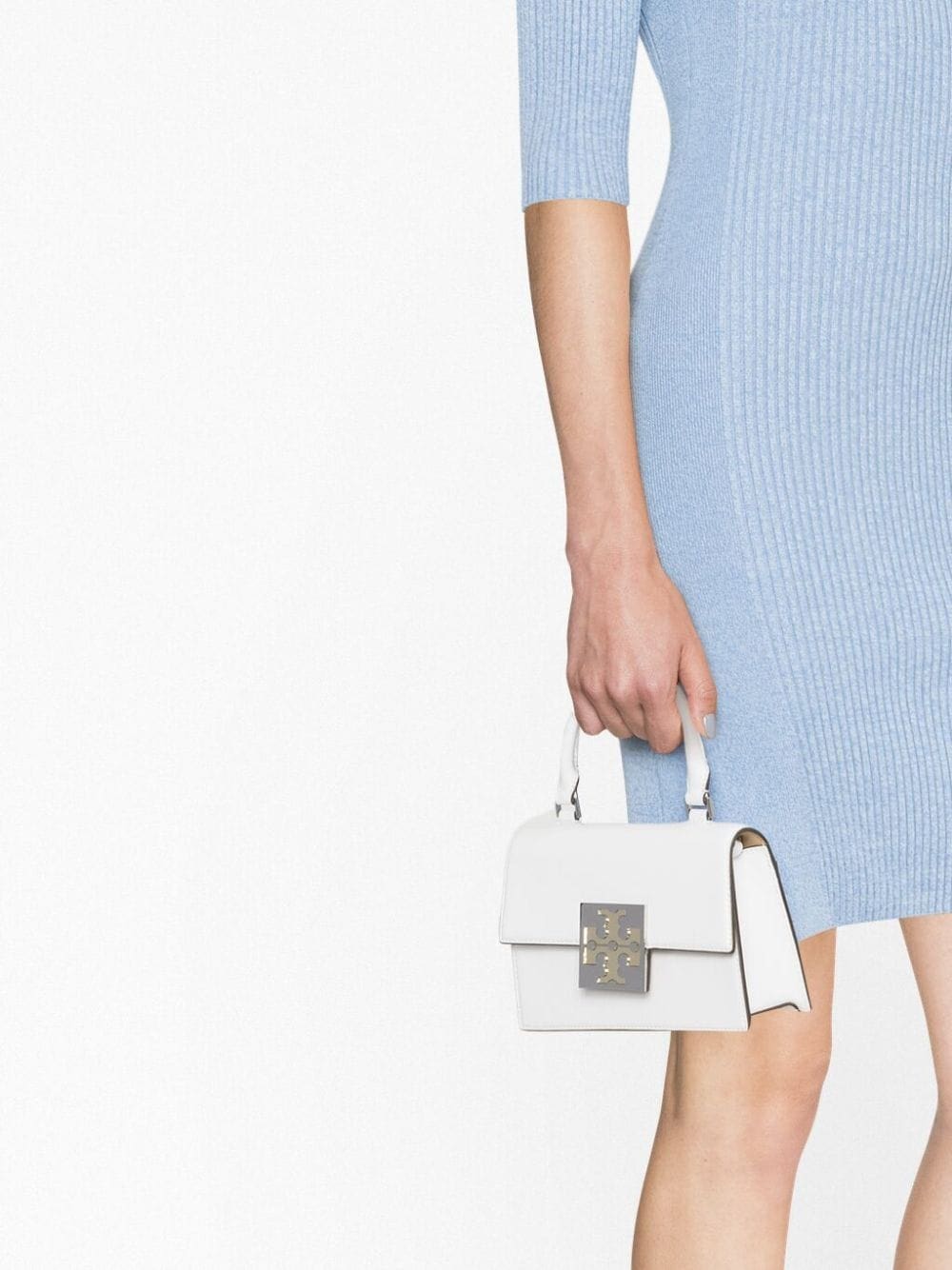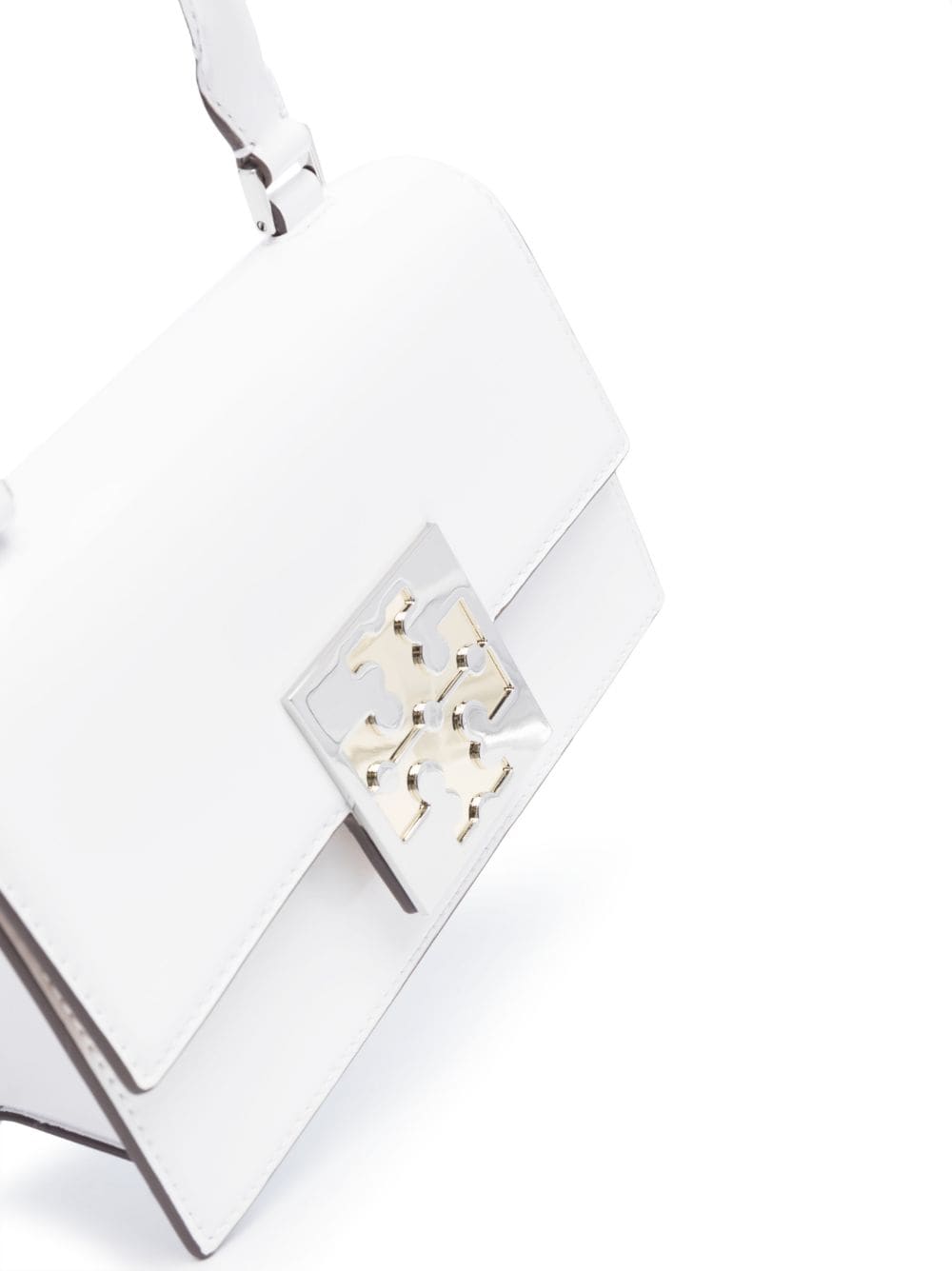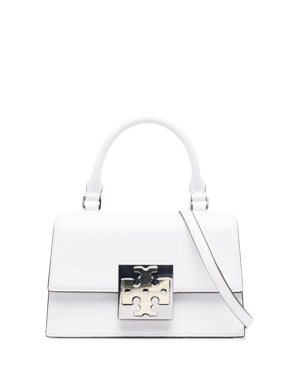 Debuting in the AW23, this mini top-handle bag arrives in a white hue. Featuring a foldover magnetic top with the iconic Double T motif, the Tory Burch accessory can be used as a tote or carried on the shoulder thanks to the detachable shoulder strap.