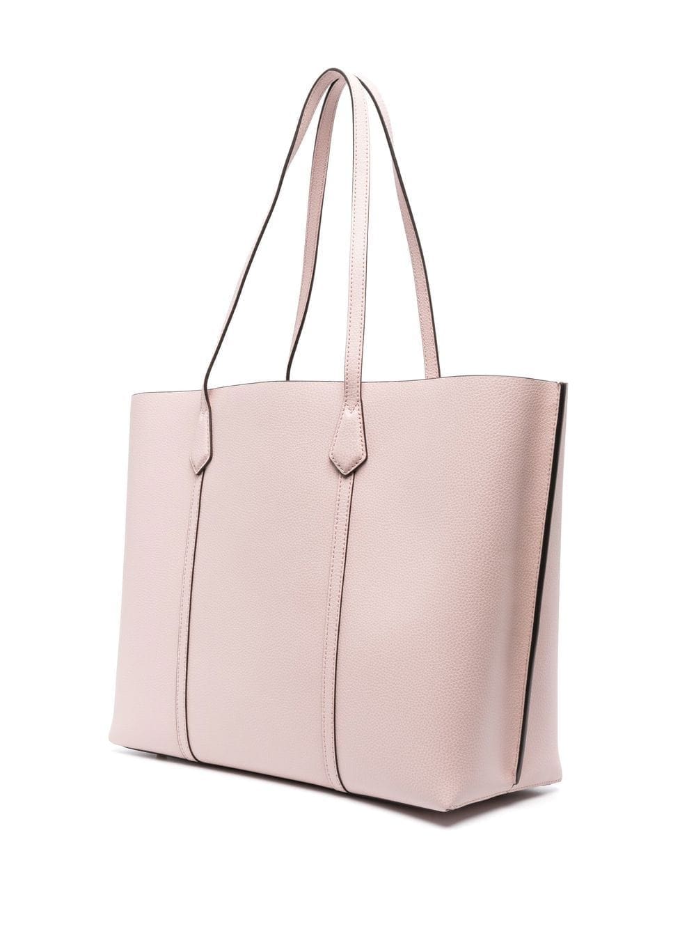 Tory Burch's Perry Triple-Compartment tote bag features a minimal design with an extra room - with a centre zip compartment that can fit a laptop. This model is crafted from pink leather and features longer straps that fit comfortably over the shoulder.