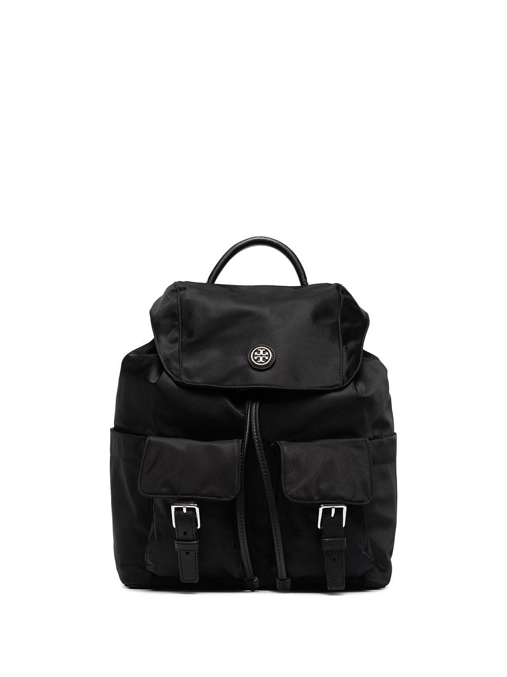 Tory Burch's revisits the practical designs of the '90s with this recycled nylon backpack. Its functional multi-pocket construction is finished with the designer's Double T plaque in silver-tone hardware for a hint of recognition.