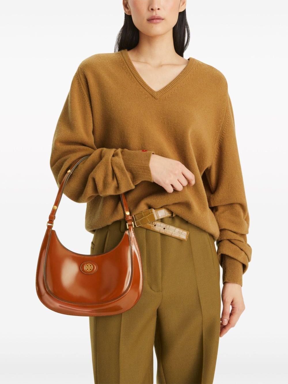 Tory Burch takes inspiration from her parents' love for travel to create the Robinson collection - defined by versatile silhouettes. This rounded shoulder bag is fitted with a practical internal pocket.