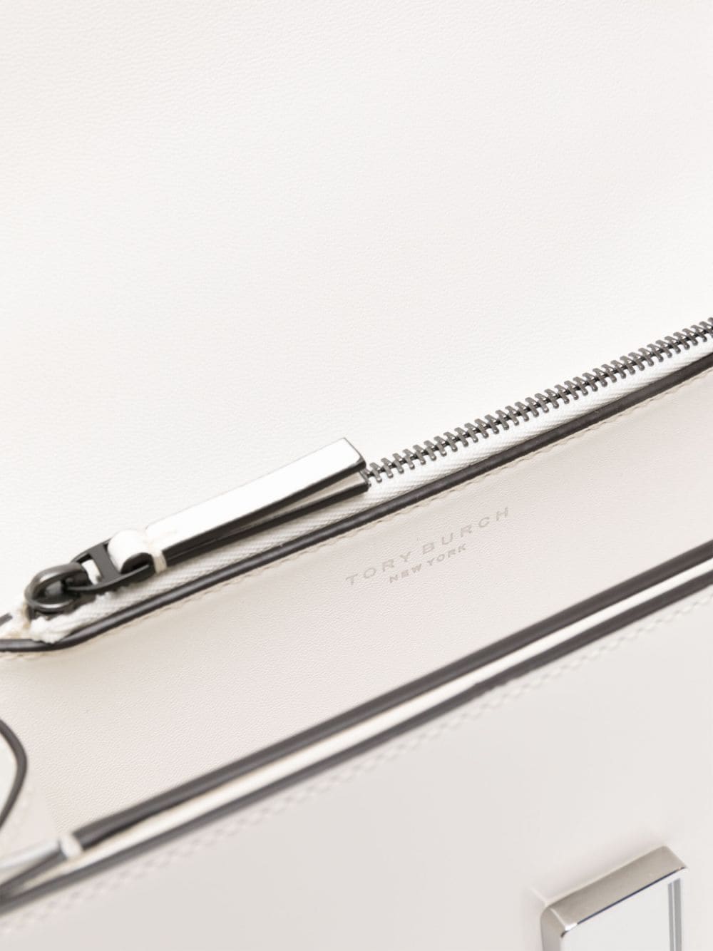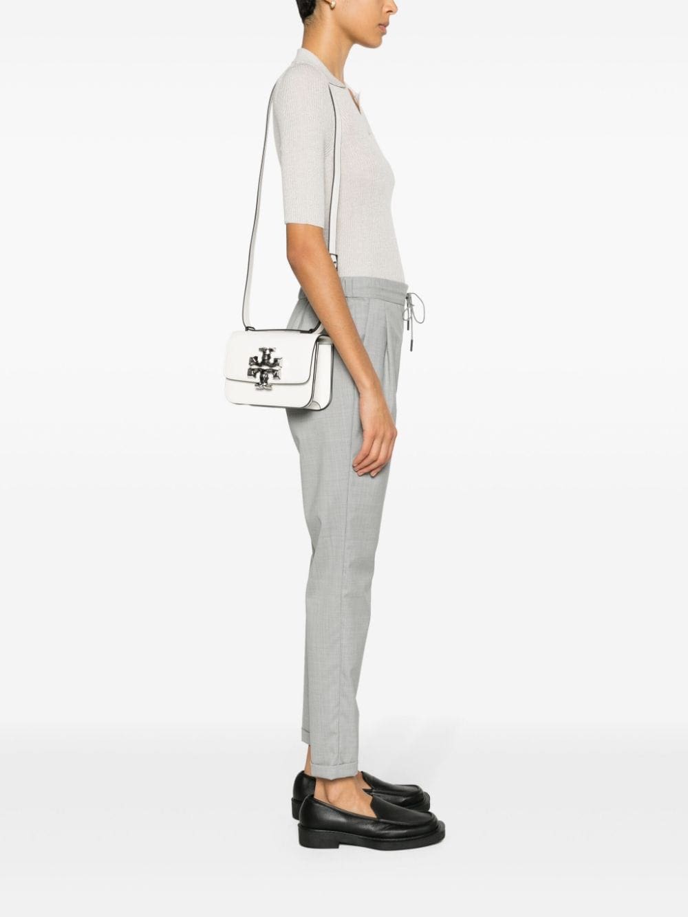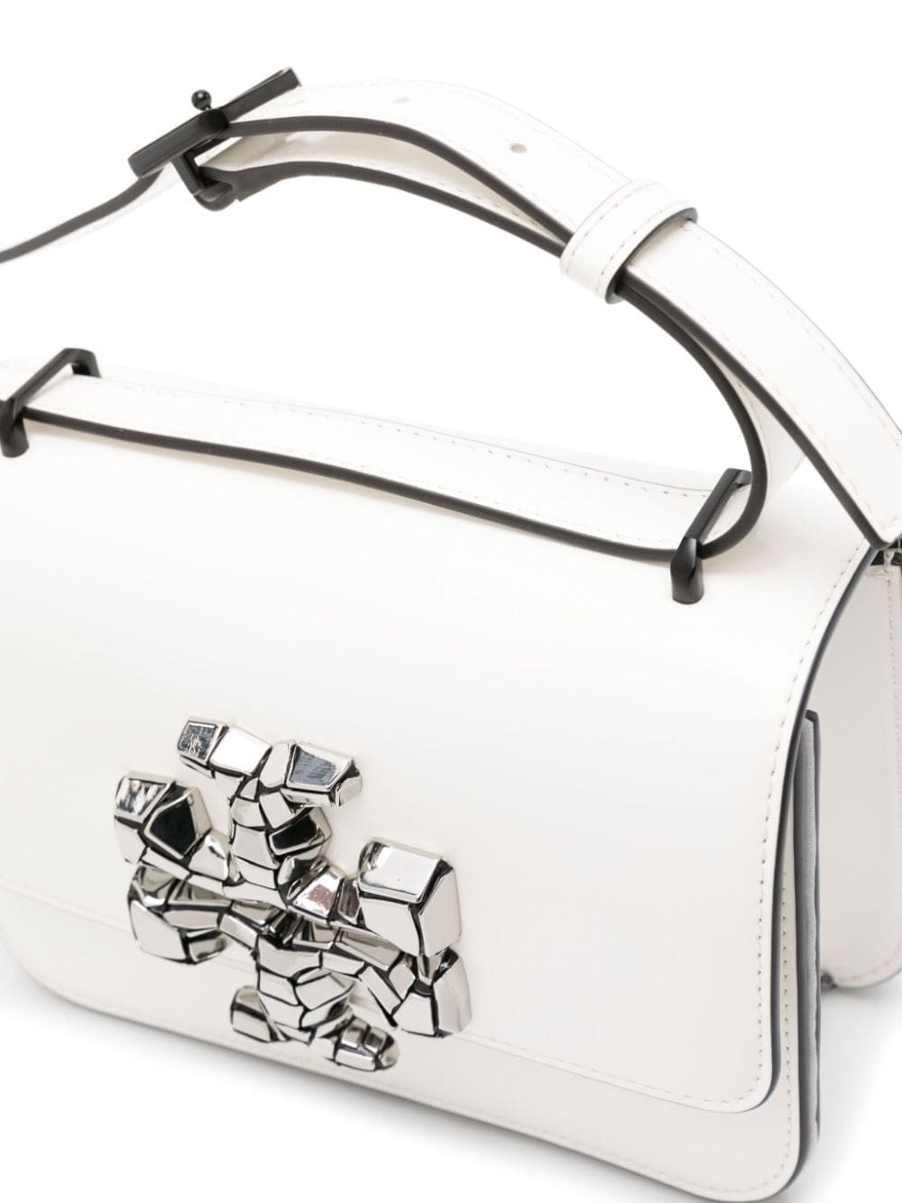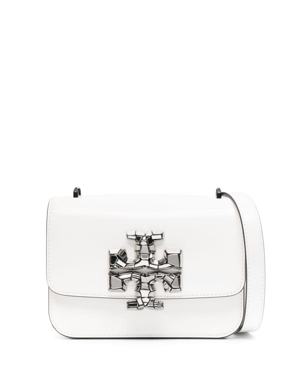 Inspired by a design from ‘70s Moroccan interior designer David Hicks, Tory Burch's Double T monogram debuted in 2004 and remains the sole logo used by the New York brand. A silver-tone version adorns the front of this small white Eleanor bag.