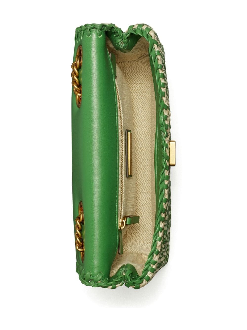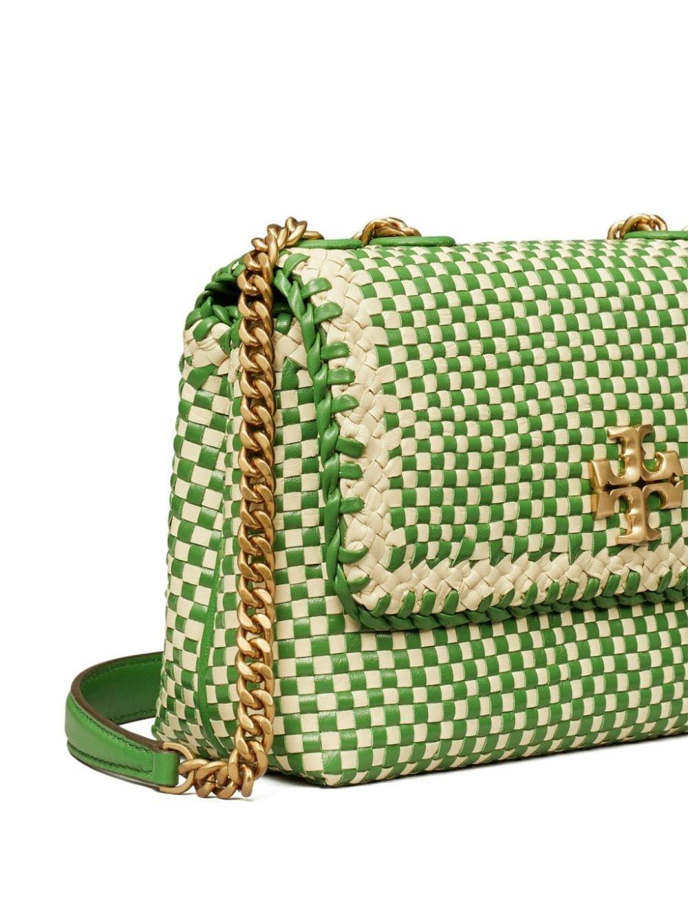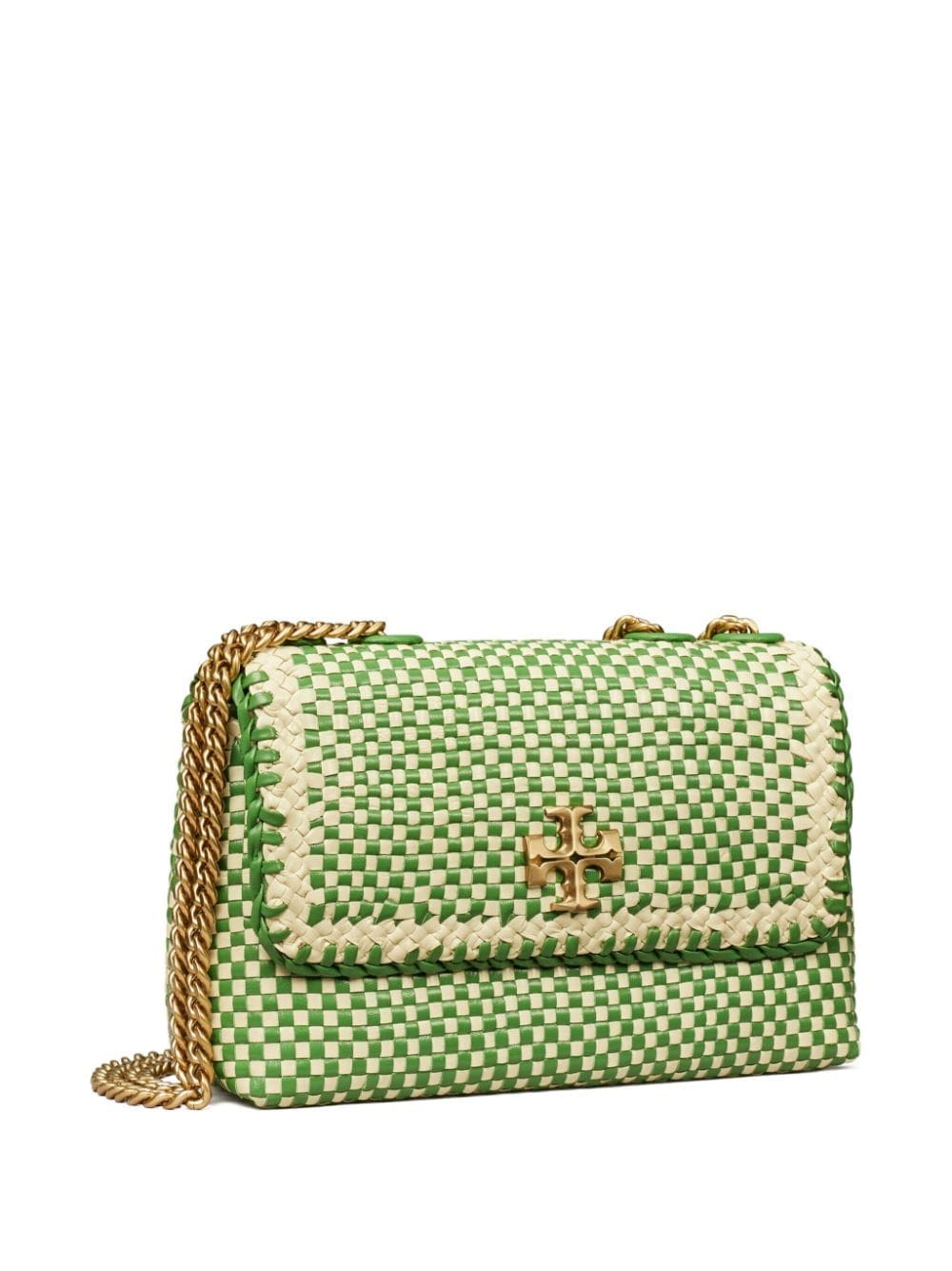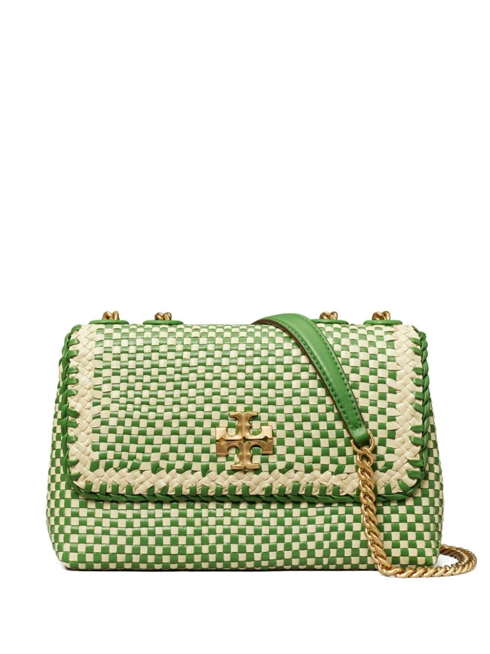 Tory Burch takes inspiration from woven café chairs to create the hand-woven design of this iteration of the iconic Kira bag. It's finished with the iconic Double T hardware and whipstitch detailing for an instantly recognisable look.