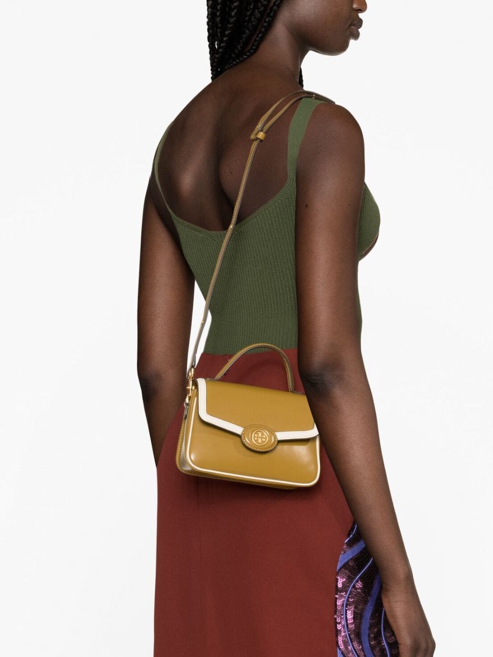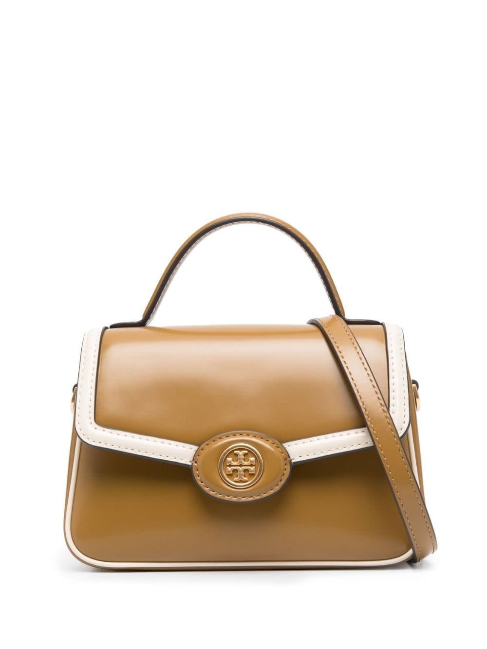 Tory Burch’s Robinson shoulder bag boasts a refined two-tone leather construction. It’s suspended by an adjustable shoulder strap and finished with a signature Double T logo plaque at the front.