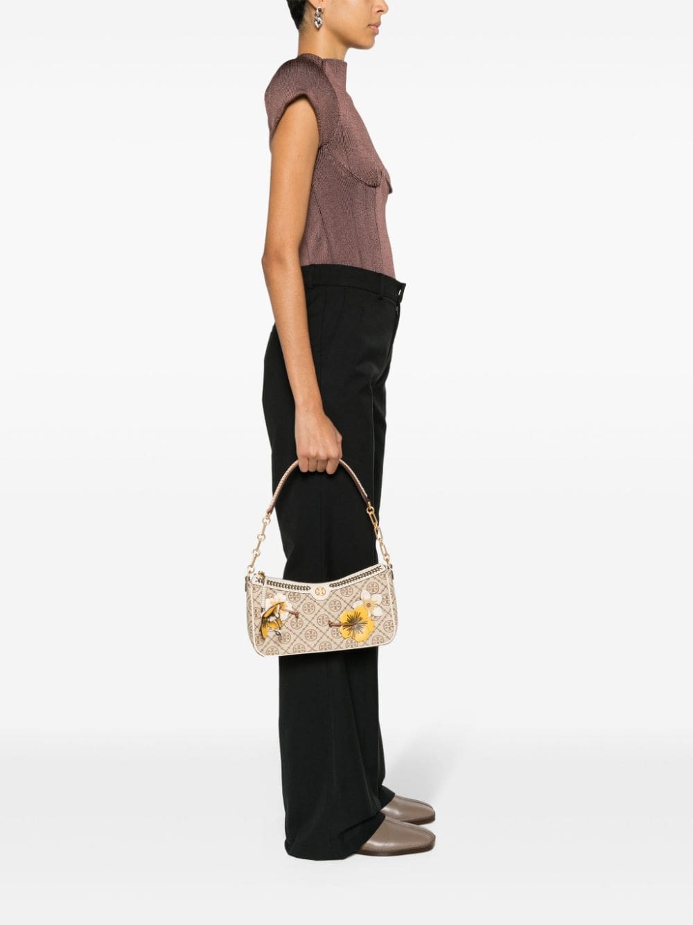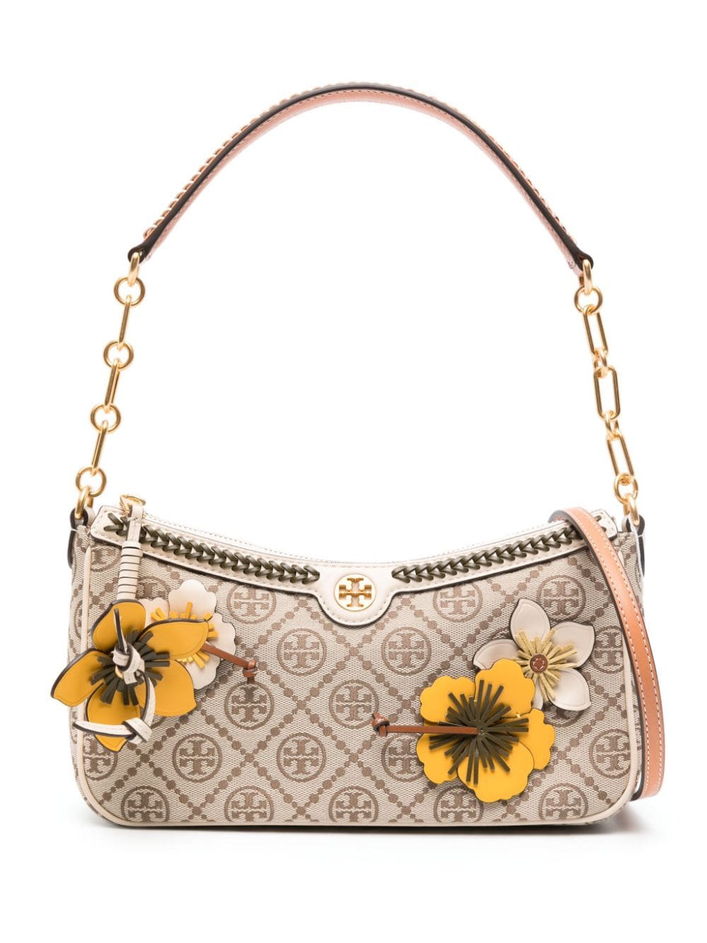 T Monogram floral-appliqué shoulder bag