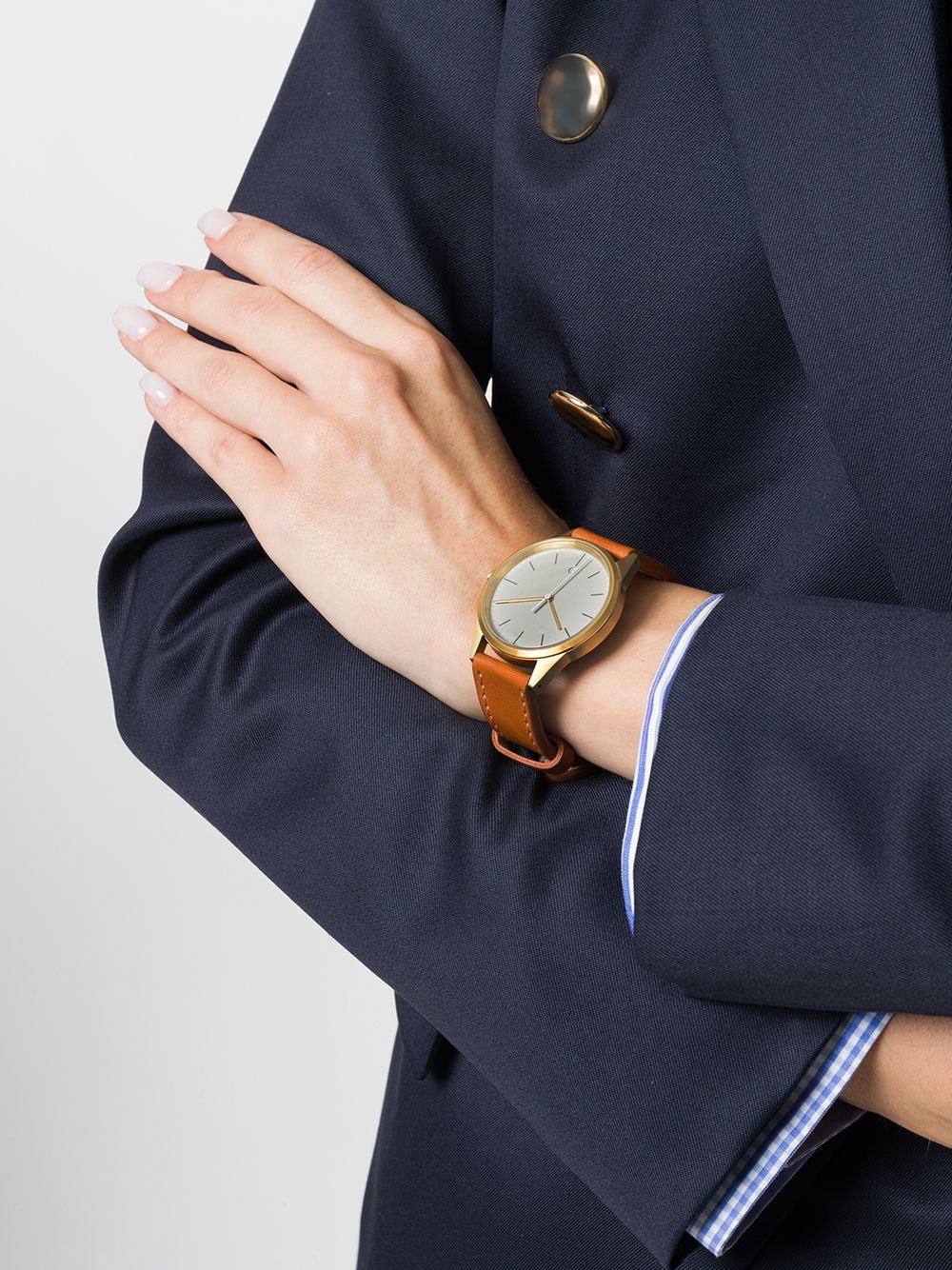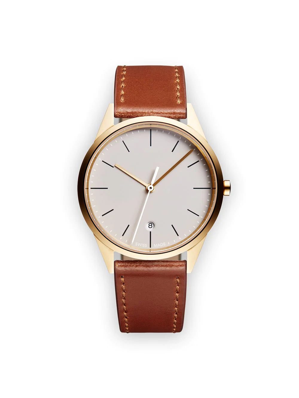 London-based watchmaker Uniform Wares is renowned for introducing contemporary British elegance to high-quality Swiss excellence. Pared-down and minimal, these luxurious timepieces are ideal for day-to-night wear. Crafted from PVD-coated satin gold stainless steel, this C36 Date dress watch from Uniform Wares features a supple tan Nappa leather strap, a classic C-line Lunette 36mm case, a Swiss-made quartz movement ETA 955.412, 7 jewels, a date indication, a scratch-resistant sapphire glass lens, a 5 ATM water resistance and a 2-year manufacturer warranty.